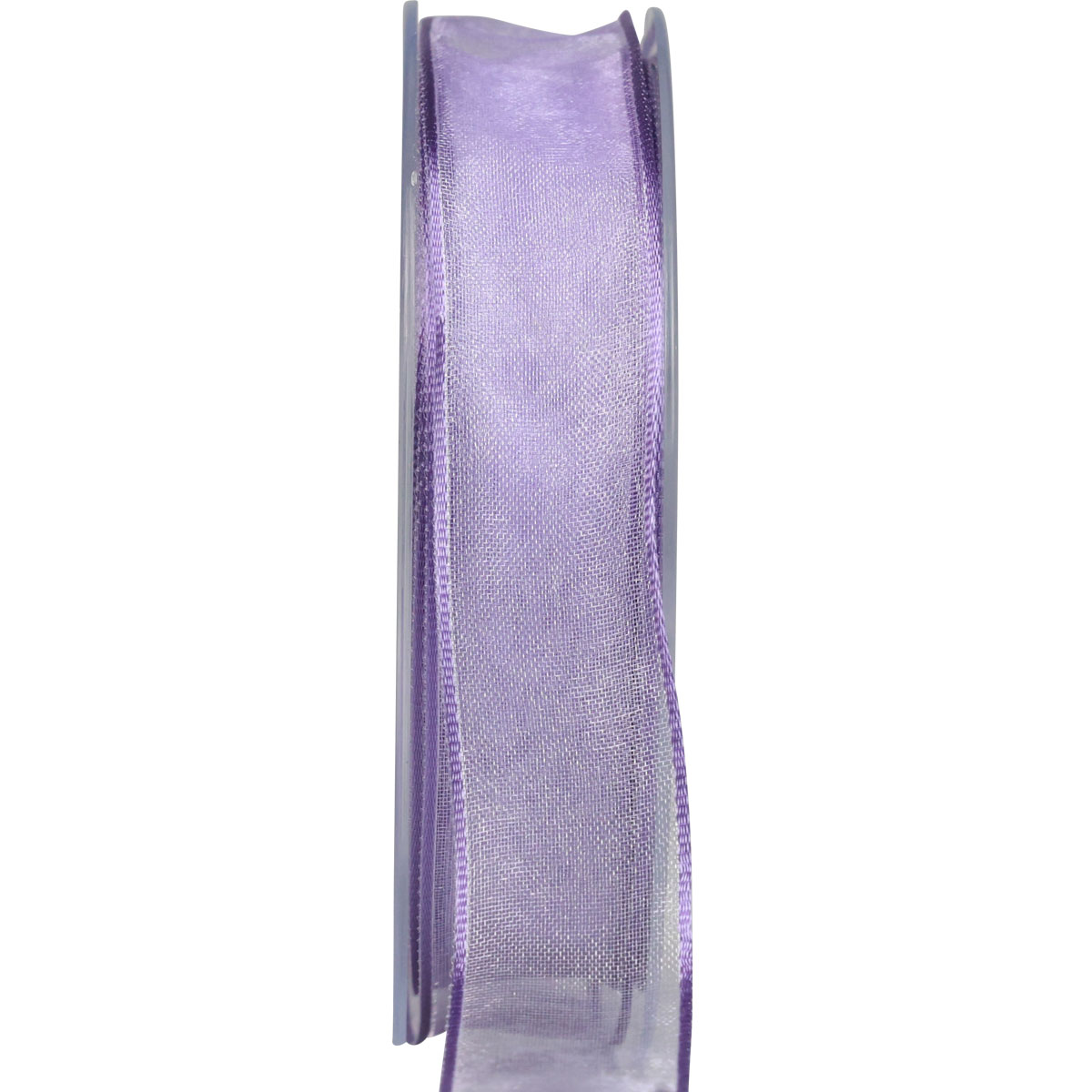A fita de chiffon é caracterizada por seu tecido de organza translúcido de cor lilás, que começa a brilhar intensamente com a luz. A borda de arame da fita permite criar laços e formas elegantes que mantêm sua forma e mostram perfeitamente suas decorações.