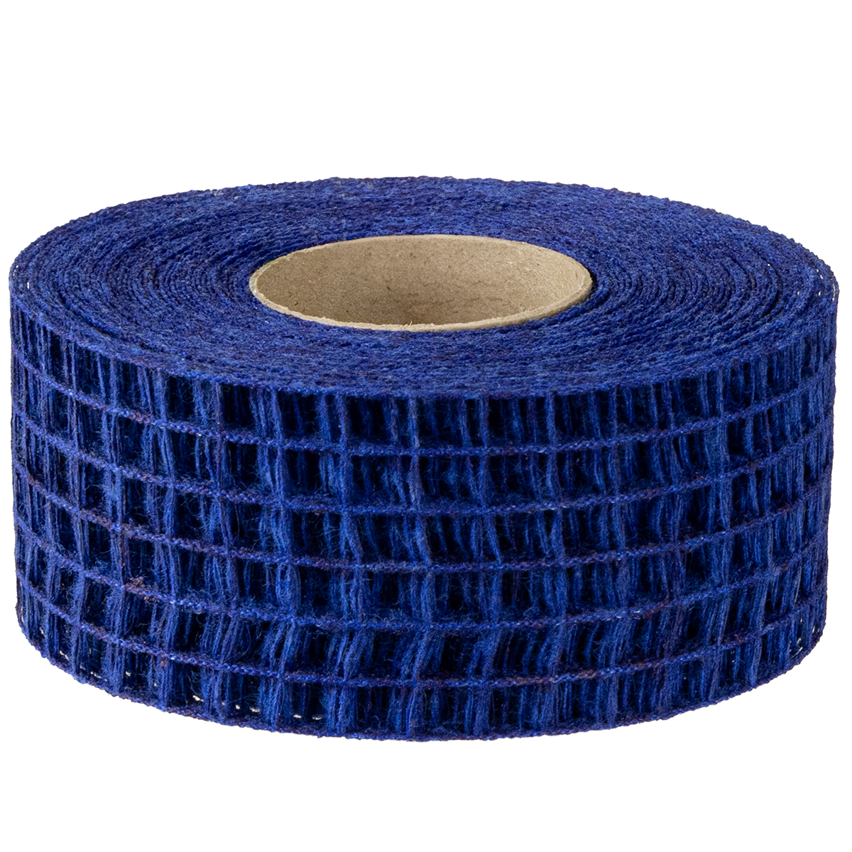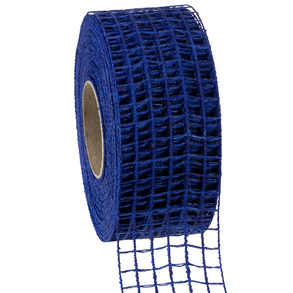 A fita da grade em azul é fornecida em rolo e tem aproximadamente 10 metros de comprimento. A largura é de cerca de 4,5 centímetros.