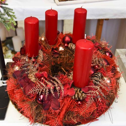 A fita de juta vermelha é entregue embrulhada em uma folha e tem uma largura de aproximadamente 5 centímetros e um comprimento de aproximadamente 40 metros. Claro, você também pode encurtar a fita conforme necessário.