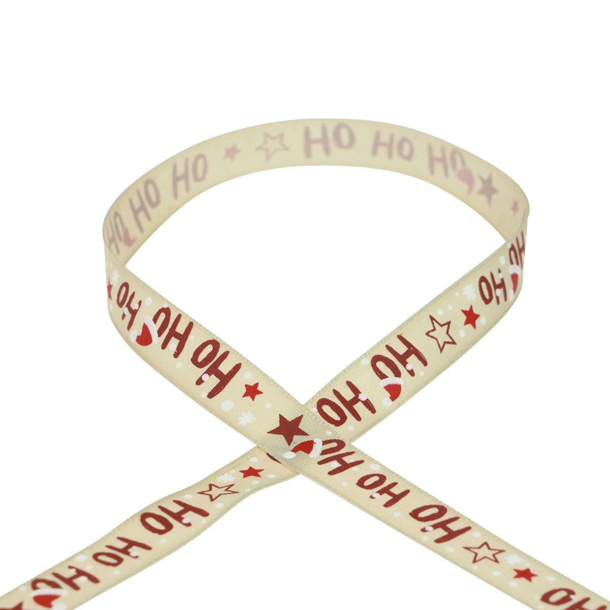 Fita de Natal “Ho Ho Ho” fita para presente bege 15mm 15m