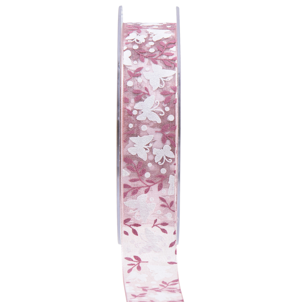 Fita de organza borboleta fita para presente rosa 25mm 20m
