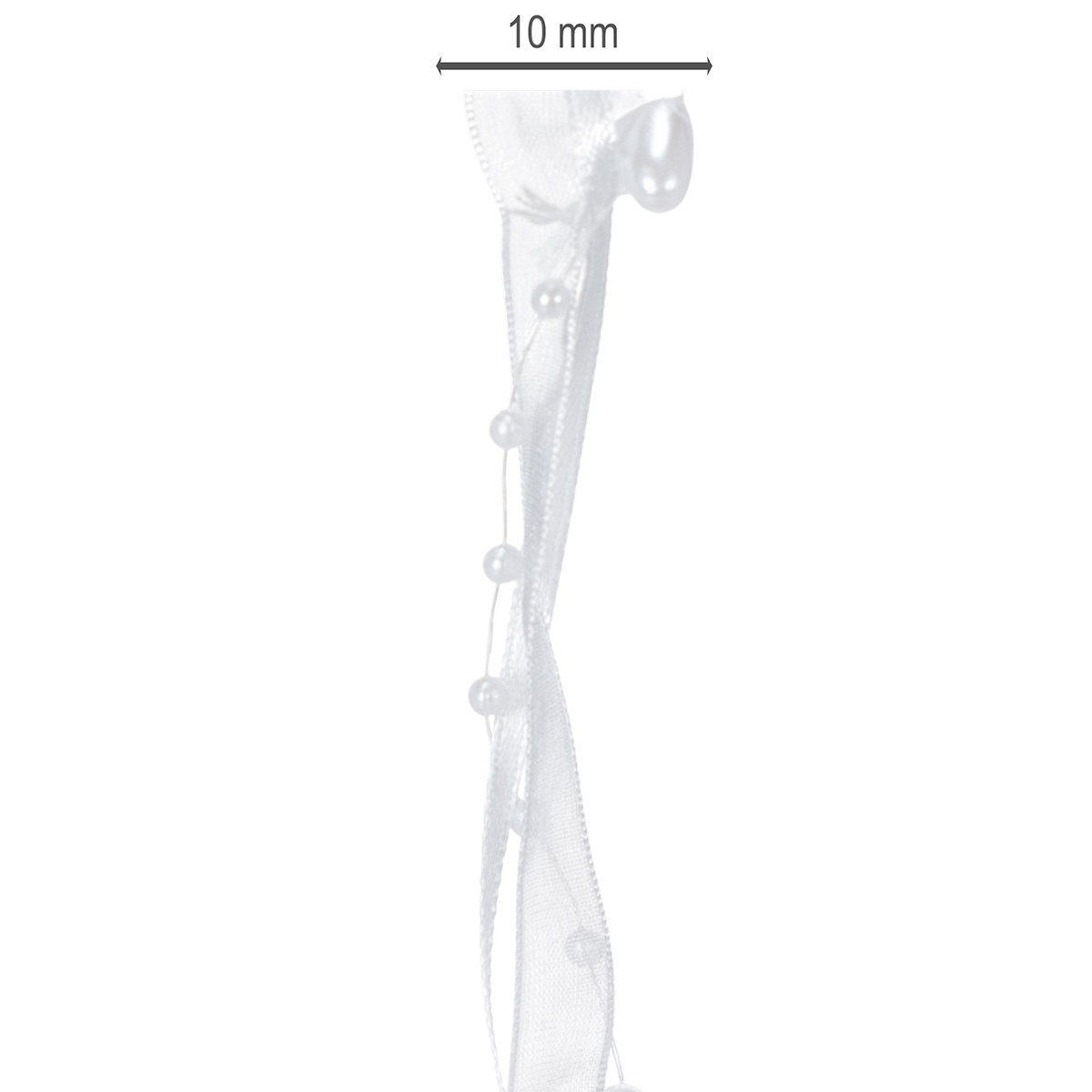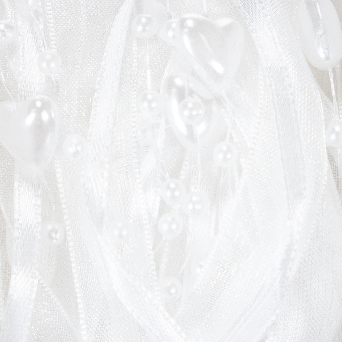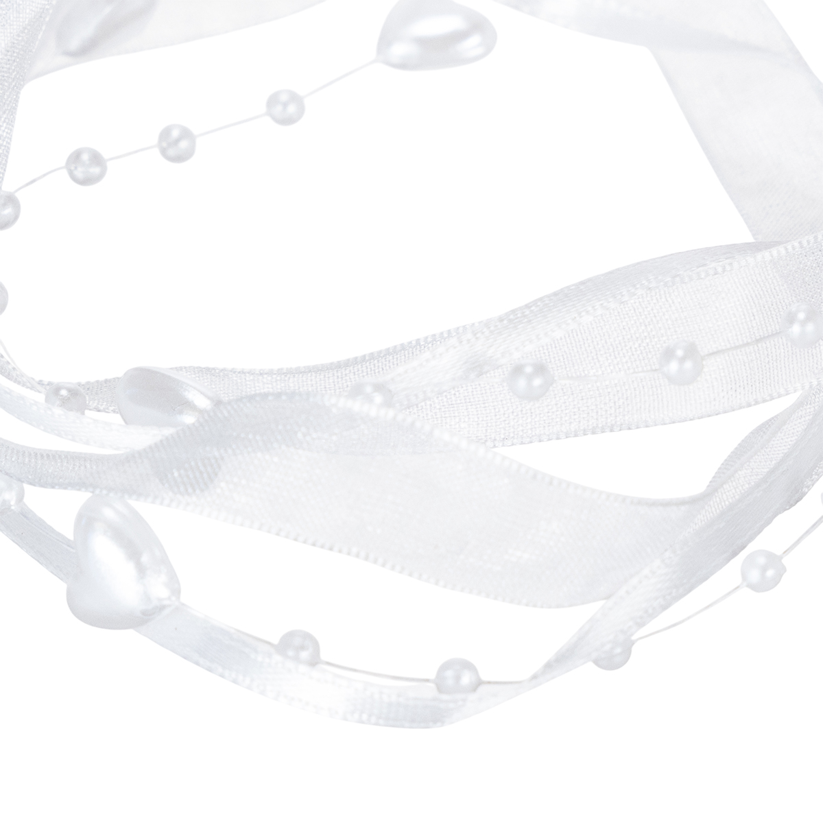 Fita de organza branca para decoração de casamento, 10mm x 5m, com corações e pérolas.