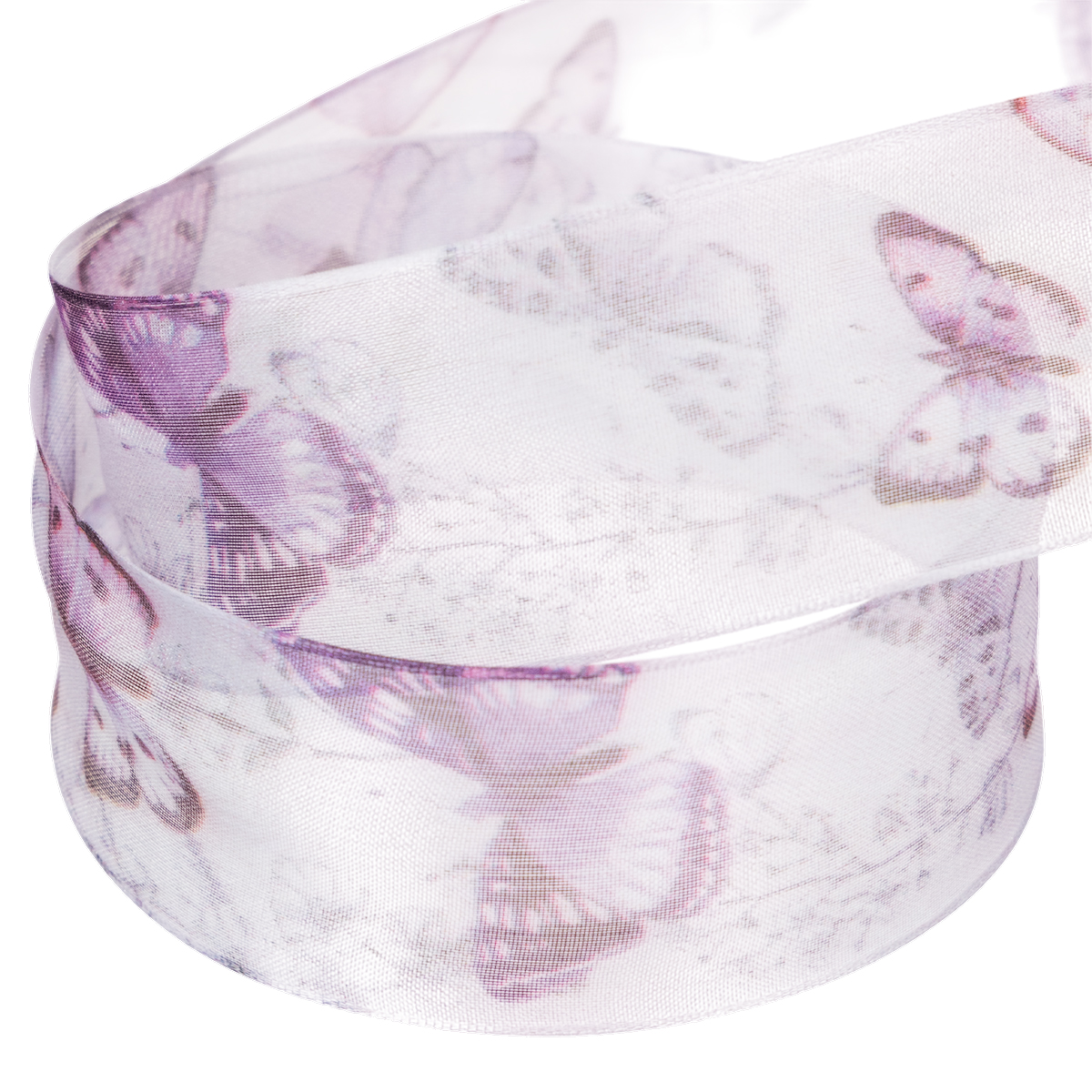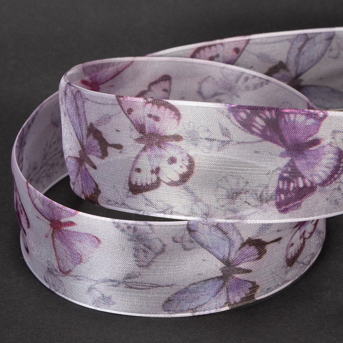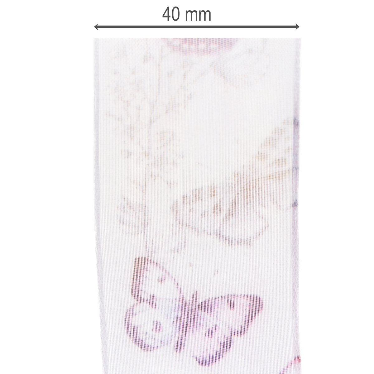 Fita de organza, fita de chiffon, borboletas, roxa, 40mm, 18m