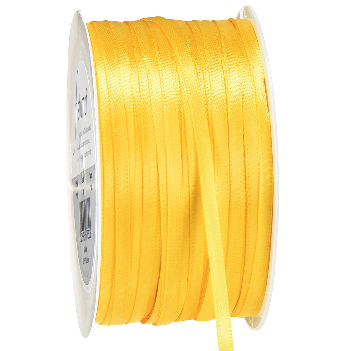 Fita de presente de alta qualidade, fita de cetim amarela 3 mm × 50 m