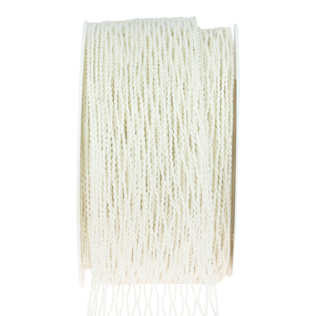 Faça um laço com a fita de malha em volta de um acessório de casamento branco para torná-lo ainda mais festivo. O branco brilhante parece elegante e amigável. O fio prateado às vezes brilha e a fita decorativa branca ganha um brilho prateado.
