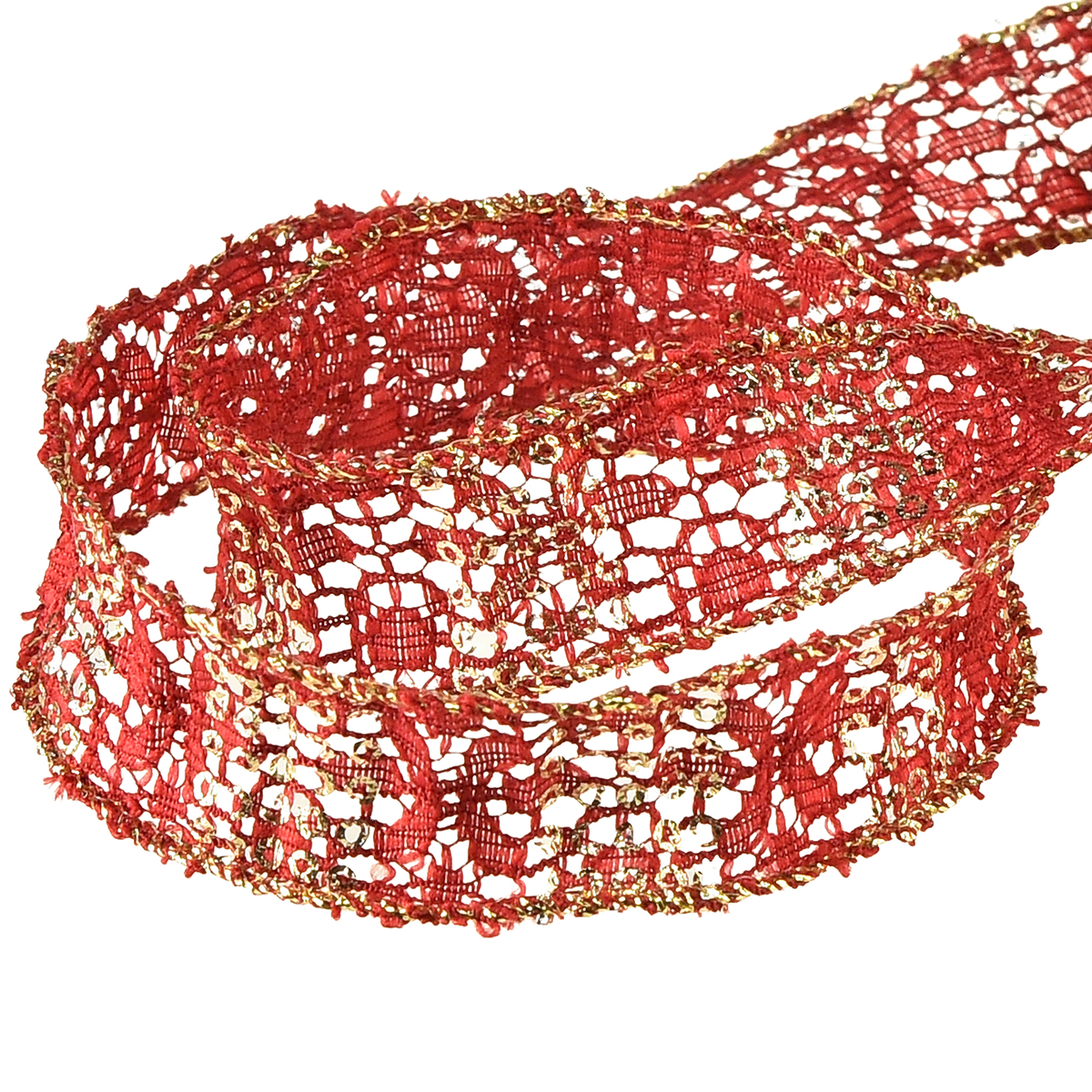 Descubra a fita de renda brilhante em vermelho e dourado para decorações festivas