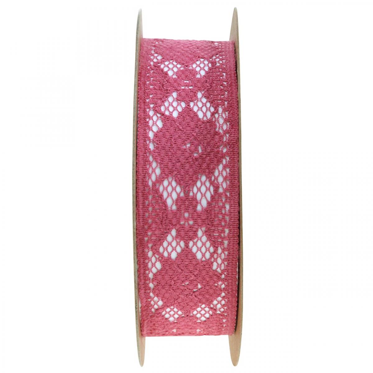 Nome do produto: Fita de renda rosa 25mm fita deco rendada 15m