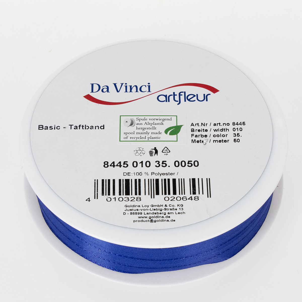 A fita para presentes e decoração na cor azul escura tem 10 milímetros de largura e aproximadamente 50 metros de comprimento.