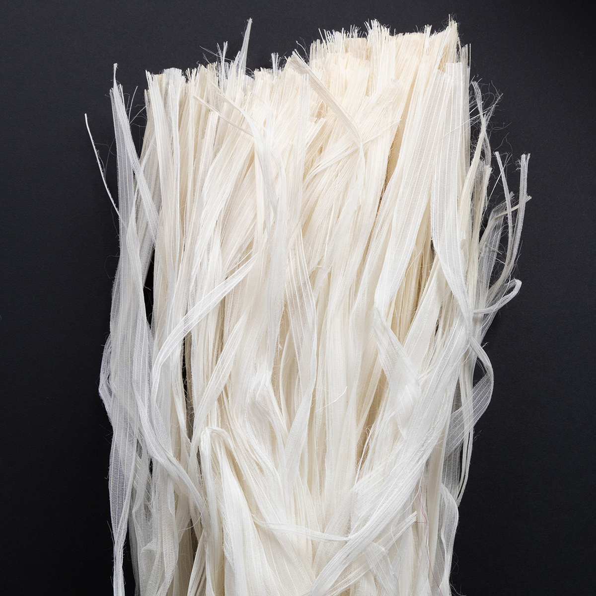A fita decorativa natural recebe o nome da aparência esquelética da fibra natural, que consiste apenas nas nervuras das folhas do material natural.