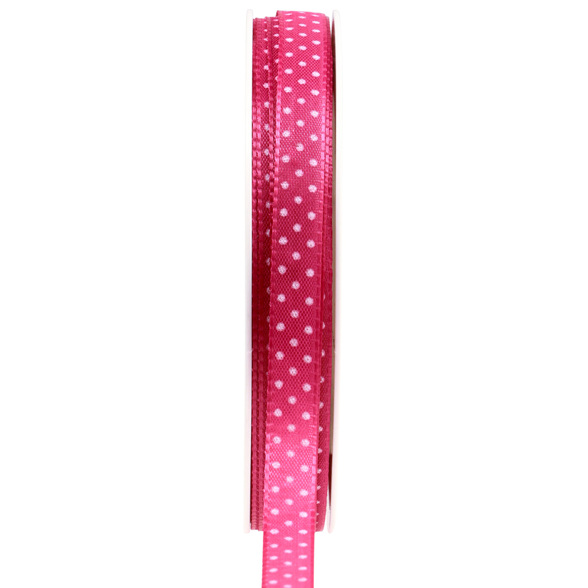 Esta fita para presente rosa de alta qualidade com brilho sedoso tem uma estrutura de tecido sutil e tem acabamento confiável com bordas resistentes para evitar desfiamento. Os pequenos pontos brancos tornam a fita decorativa atraente.