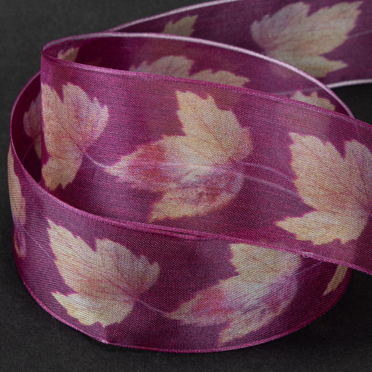 Fita para presente folhas de bordo fita roxa outono 40mm 15m