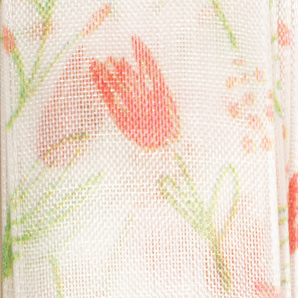Fita de presente com estampa de tulipas – ideal para decorações de primavera e ocasiões especiais.