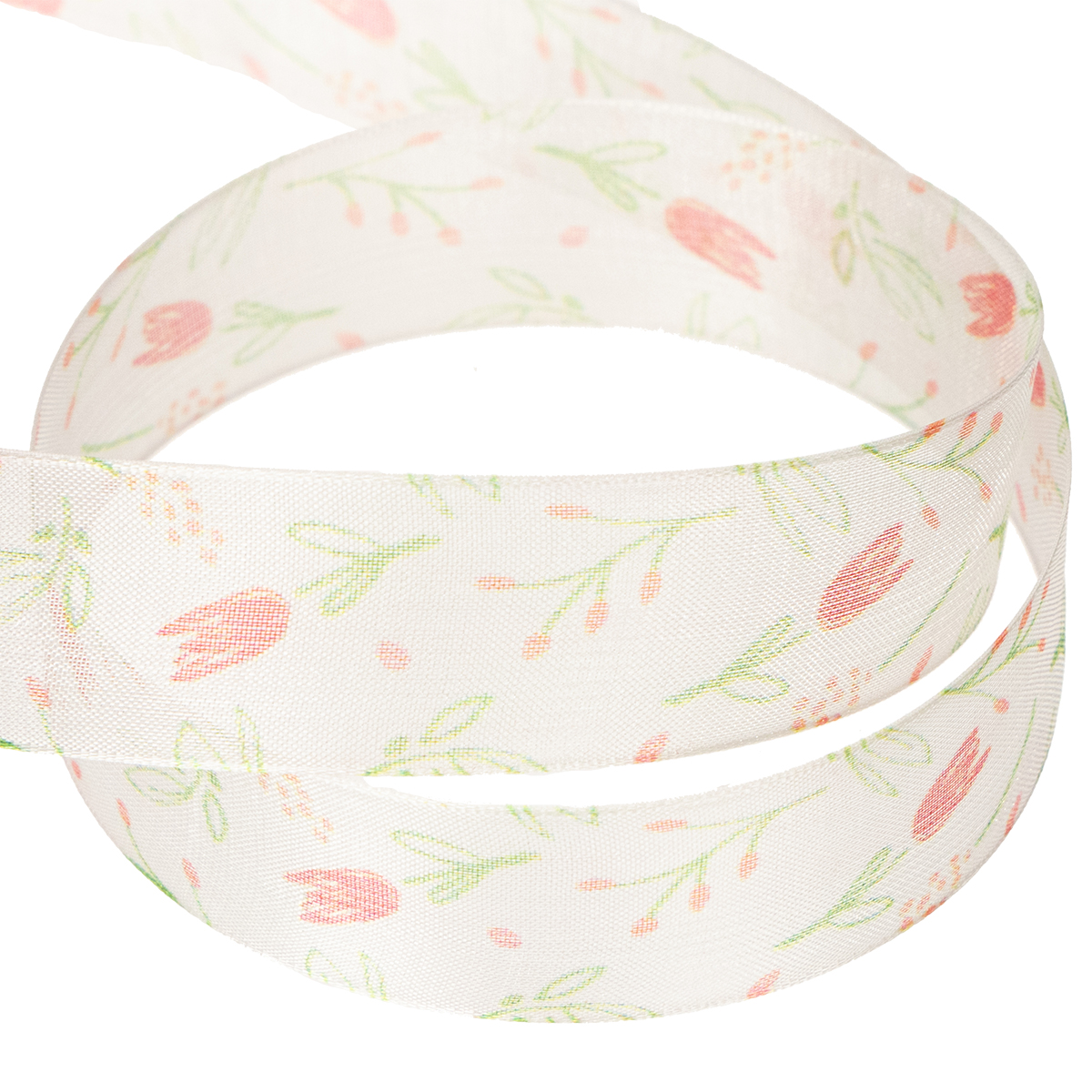 Fita para presentes com estampa de tulipas, criativa para ocasiões especiais e decoração sazonal, 2,5 cm de largura, 18 m de comprimento.