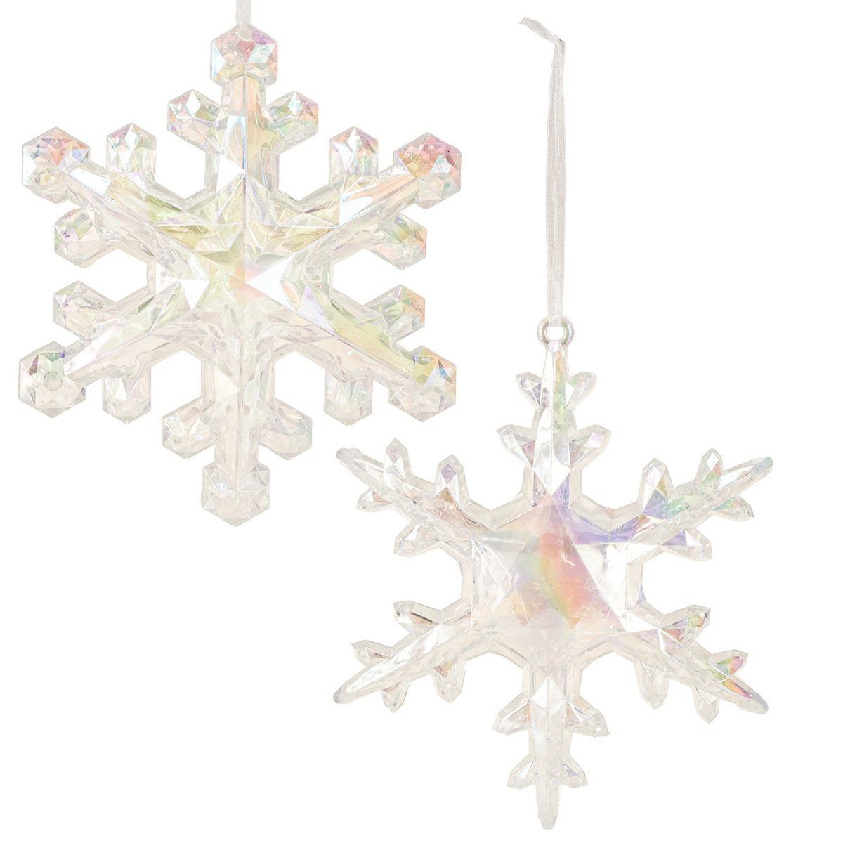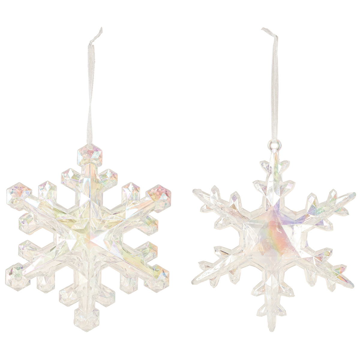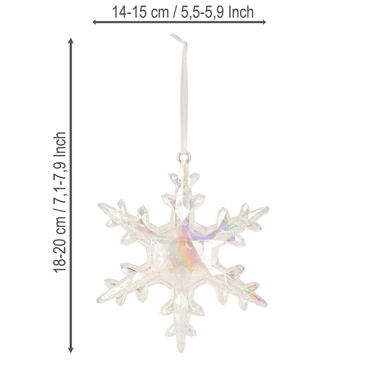 Flocos de neve decorativos, decoração de inverno, iridescentes, Ø14–15cm, 2 peças