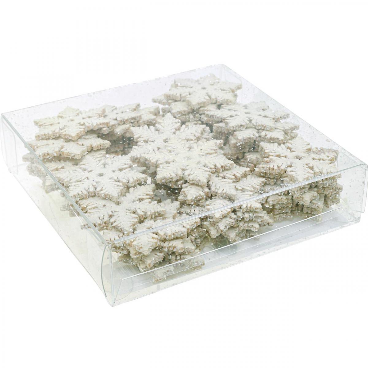 Nome do produto: Flocos de neve madeira 4cm branco com mica 72 un