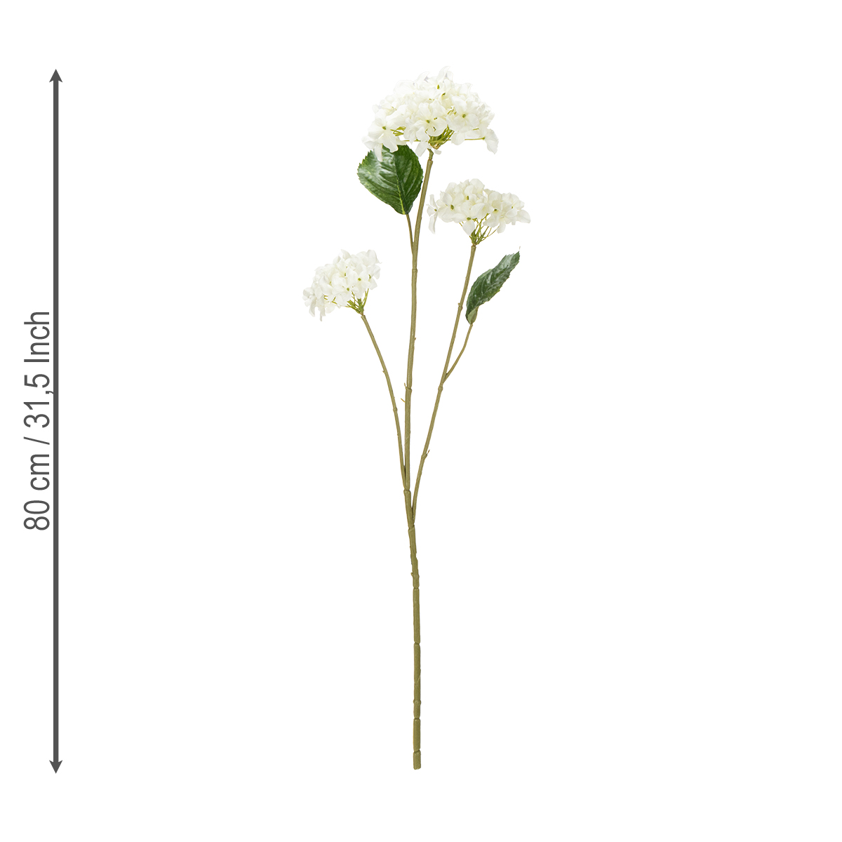 Já se perguntou como adicionar um toque elegante e atemporal à sua casa com o mínimo esforço? Então, as hortênsias artificiais podem ser exatamente o que você procura! Esta flor artificial branca impressiona com sua aparência incrivelmente realista e versatilidade. Seja como destaque em salas de estar modernas, como parte de um arranjo de mesa elegante ou como um detalhe impressionante em áreas de recepção, esta flor decorativa e durável se integra perfeitamente a qualquer ambiente. Três flores exuberantes e duas folhas verdes adornam um caule delicado, conferindo ao arranjo uma aparência particularmente natural. Com 80 cm de altura e 30 cm de largura, é ideal para vasos maiores ou arranjos decorativos no chão. A construção em poliéster e plástico de alta qualidade garante que você poderá desfrutar desta elegante flor artificial por muito tempo.
