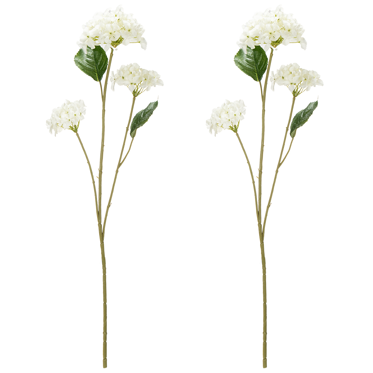 - Design natural com três flores e duas folhas por ramo.