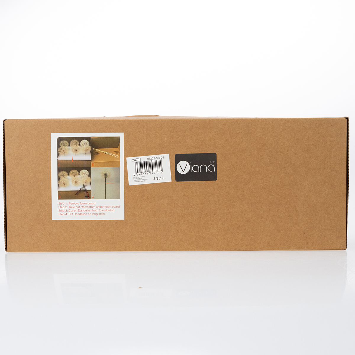 Flor de dente-de-leão seca, elegante, duradoura e fácil de cuidar, 50 cm, 4 peças.
