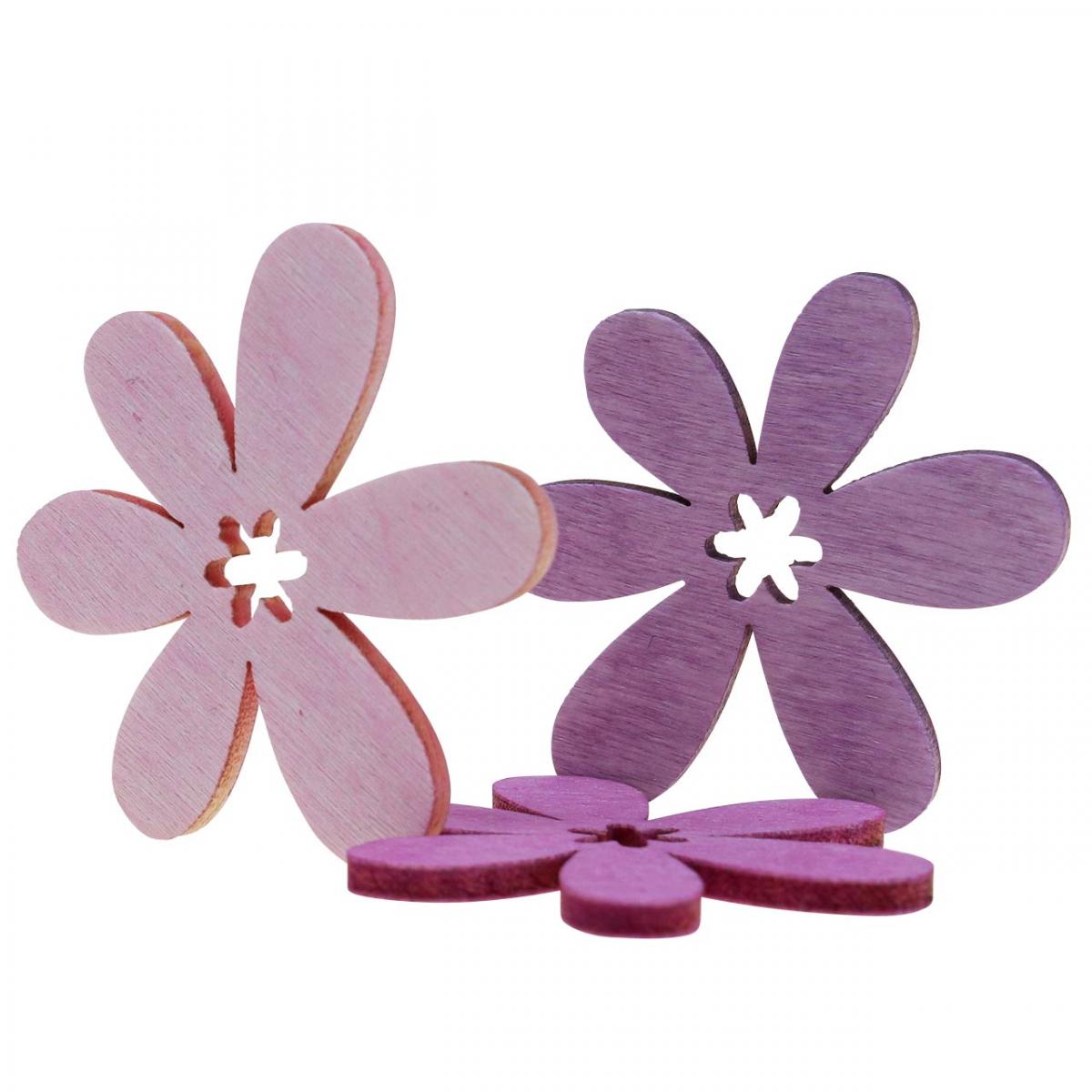 Flores de madeira decoração dispersa flores madeira roxa/violeta/rosa Ø4cm 72 un