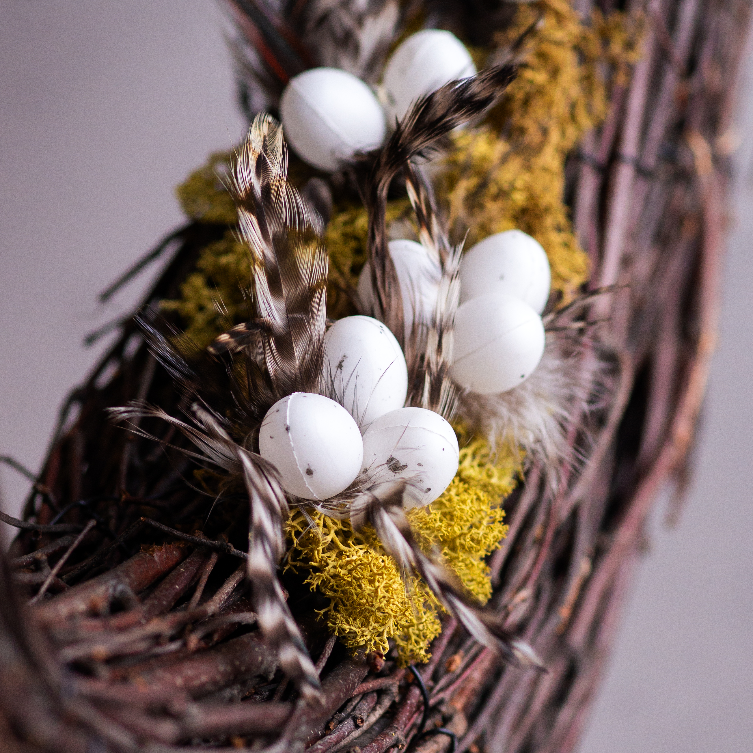 - Material: Vareta de madeira com penas naturais e pequenos ovos de plástico