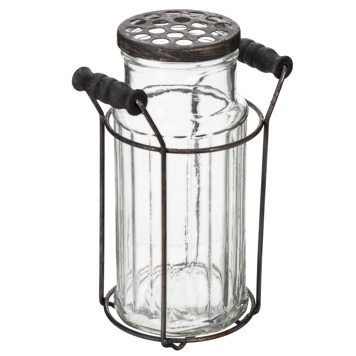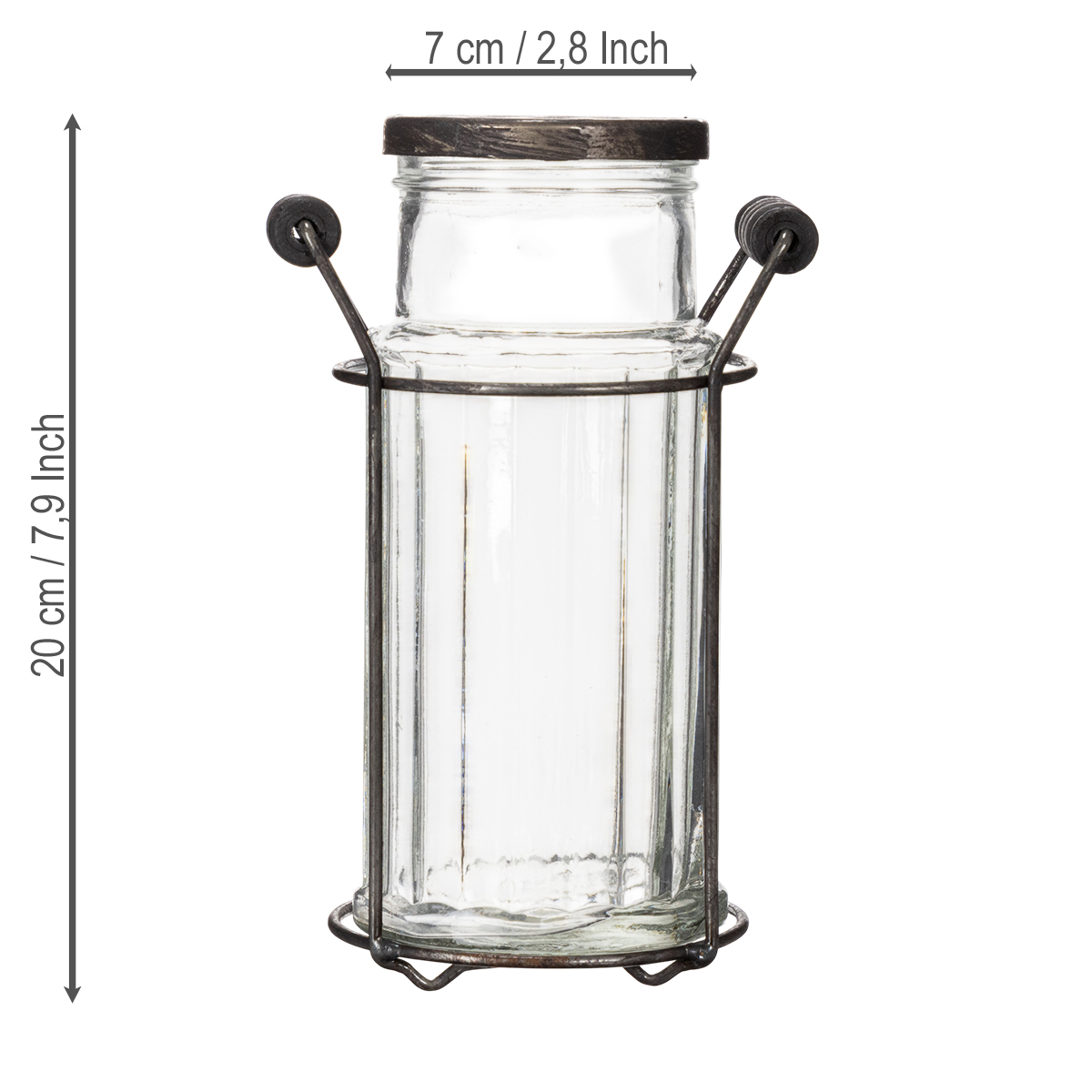 Garrafa de vidro em cesto de metal, ideal para decoração na sala de estar, 20 cm