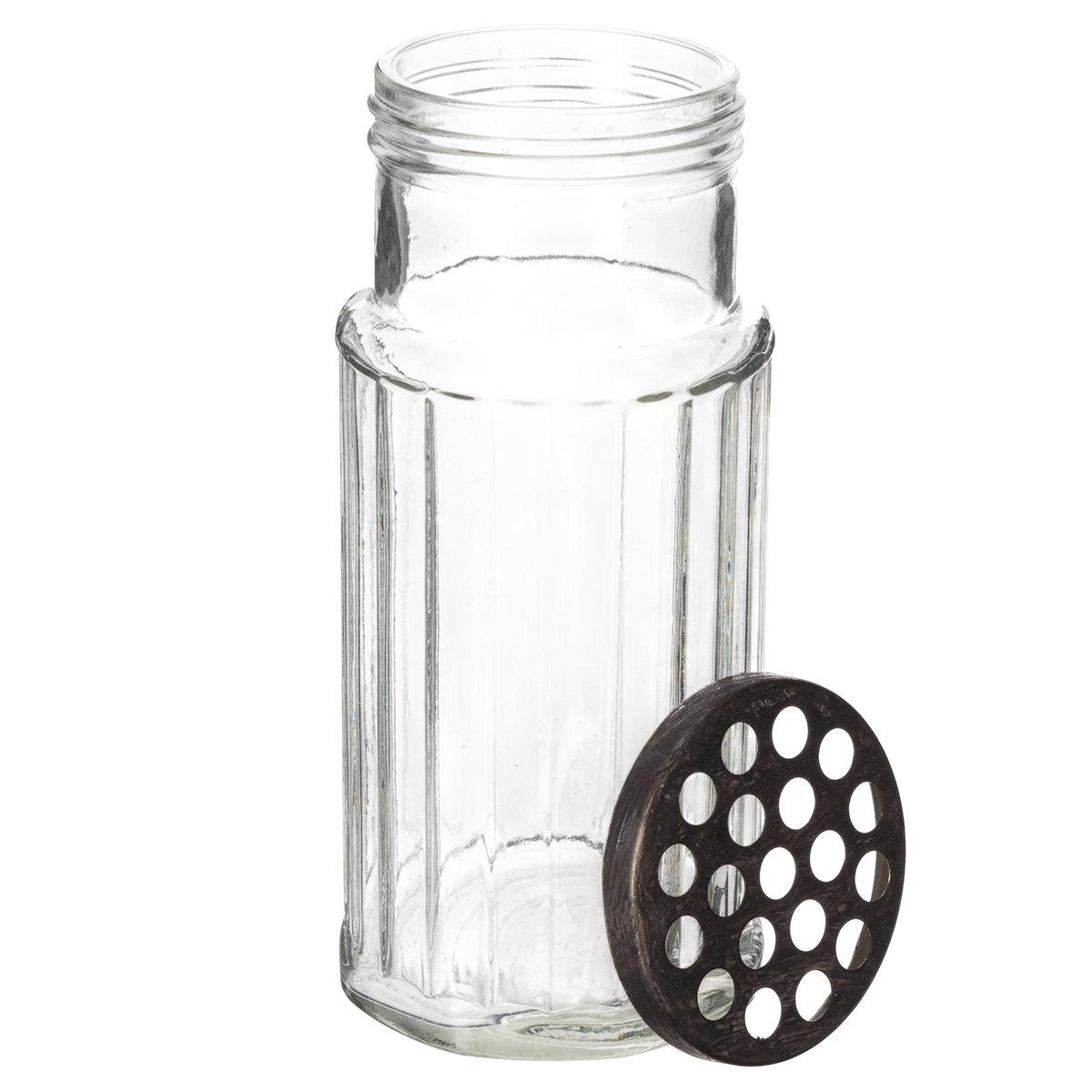 A combinação de vidro e metal traz um toque de estilo industrial para sua casa, enquanto o delicado acabamento a torna uma peça clássica e atraente. Feita de vidro de alta qualidade e com uma estrutura de metal resistente, esta garrafa impressiona não só visualmente, mas também pela sua durabilidade. A tampa com suas pequenas aberturas a torna particularmente versátil: use-a como vaso para flores individuais, como porta-utensílios de cozinha decorativo ou até mesmo como um criativo castiçal. Seja na sala de estar, na cozinha ou no corredor, esta garrafa de vidro encontrará seu lugar em qualquer ambiente.