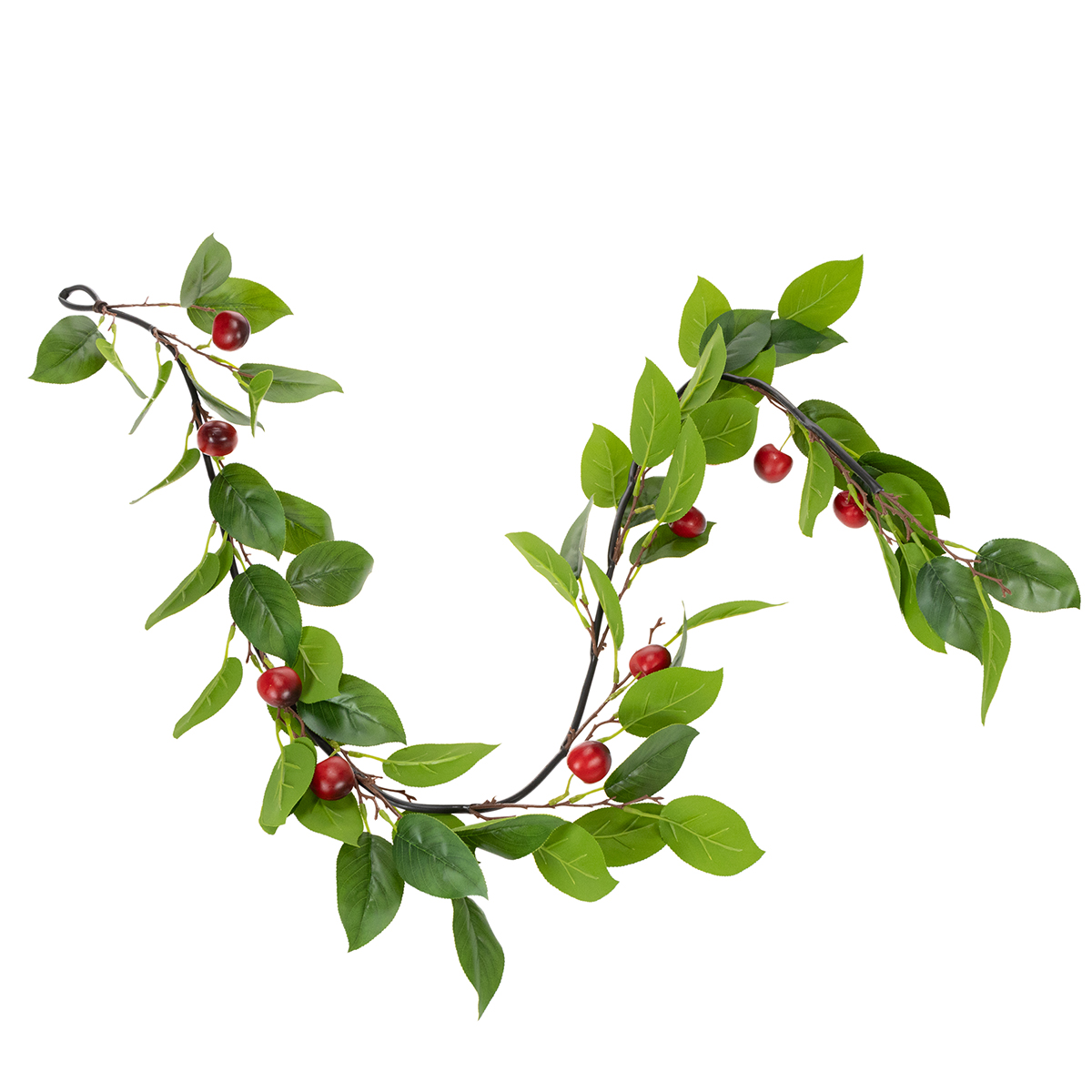 Guirlanda artificial com cerejas – o complemento perfeito para uma decoração de ambiente com toque natural.