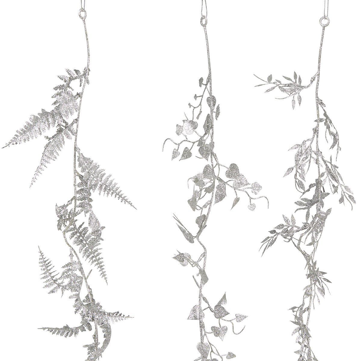 Encante sua casa com nossas decorações brilhantes com folhas e samambaias. A guirlanda artificial em prata é uma decoração radiante para um ambiente festivo em qualquer época do ano, mas principalmente no Natal. Com 180 cm de comprimento e três tipos, a guirlanda decorativa prateada é ideal para chamar a atenção com estilo.