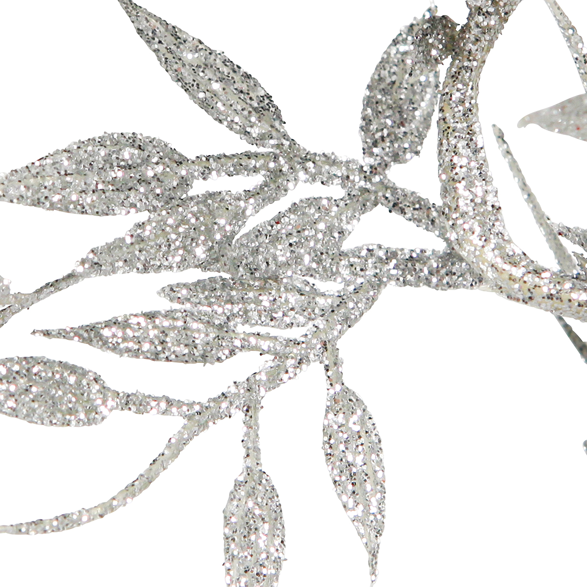 A atenção aos detalhes se reflete nas folhas finamente trabalhadas, com acabamento em glitter prateado. Um chamariz que não pode faltar em eventos e festas, como decoração de vitrine ou decoração de casamento. Coloque a nossa decoração brilhante suspensa sobre a moldura da porta, projete com estilo a moldura da sua janela ou adicione detalhes elegantes à sua parede.