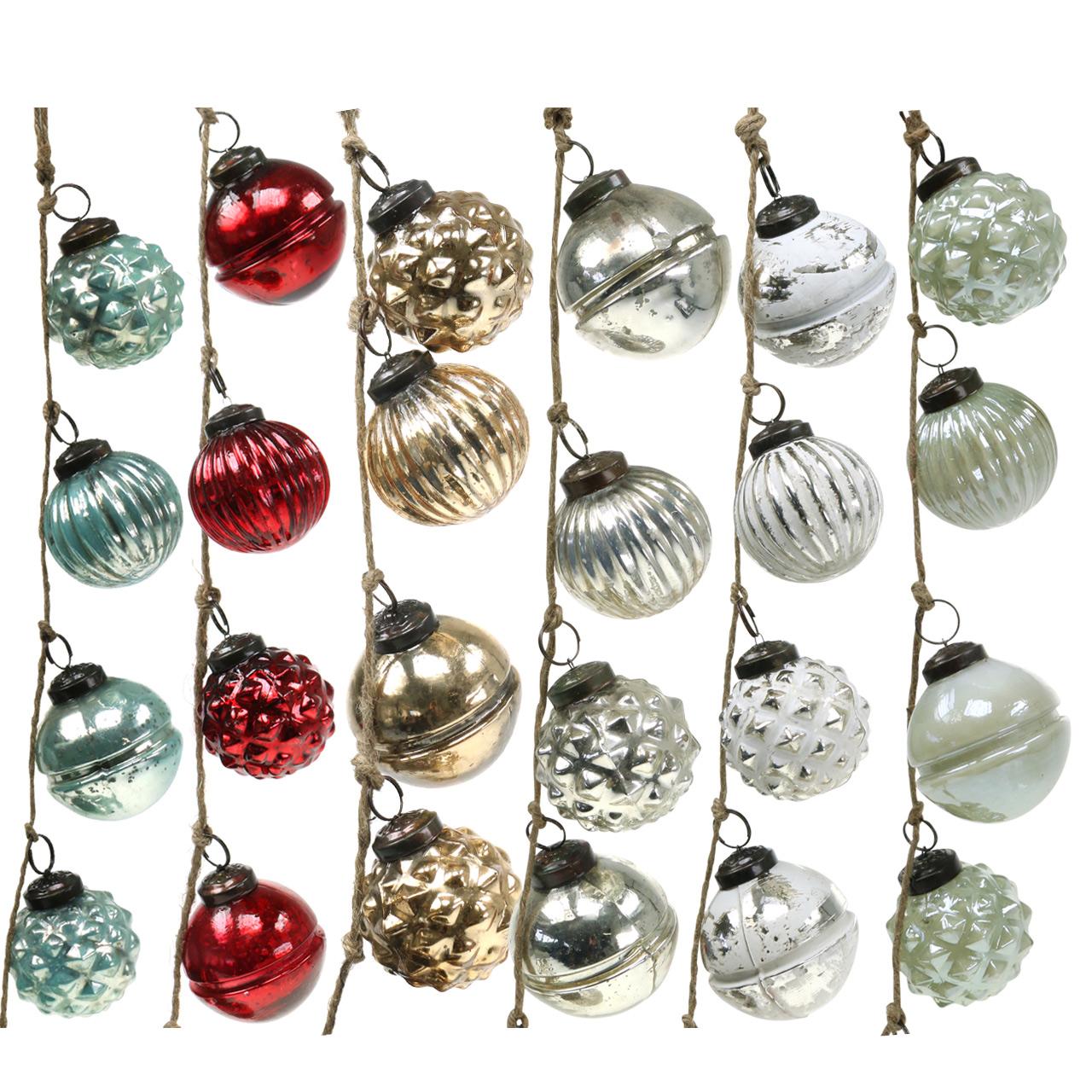 Que brilho incrível: em um visual antigo com superfícies diferentes, um total de doze bolas de árvore de Natal distintas, juntamente com um cordão de juta, criam uma grinalda encantadora. Você pode escolher entre seis cores diferentes usando a guia à direita.