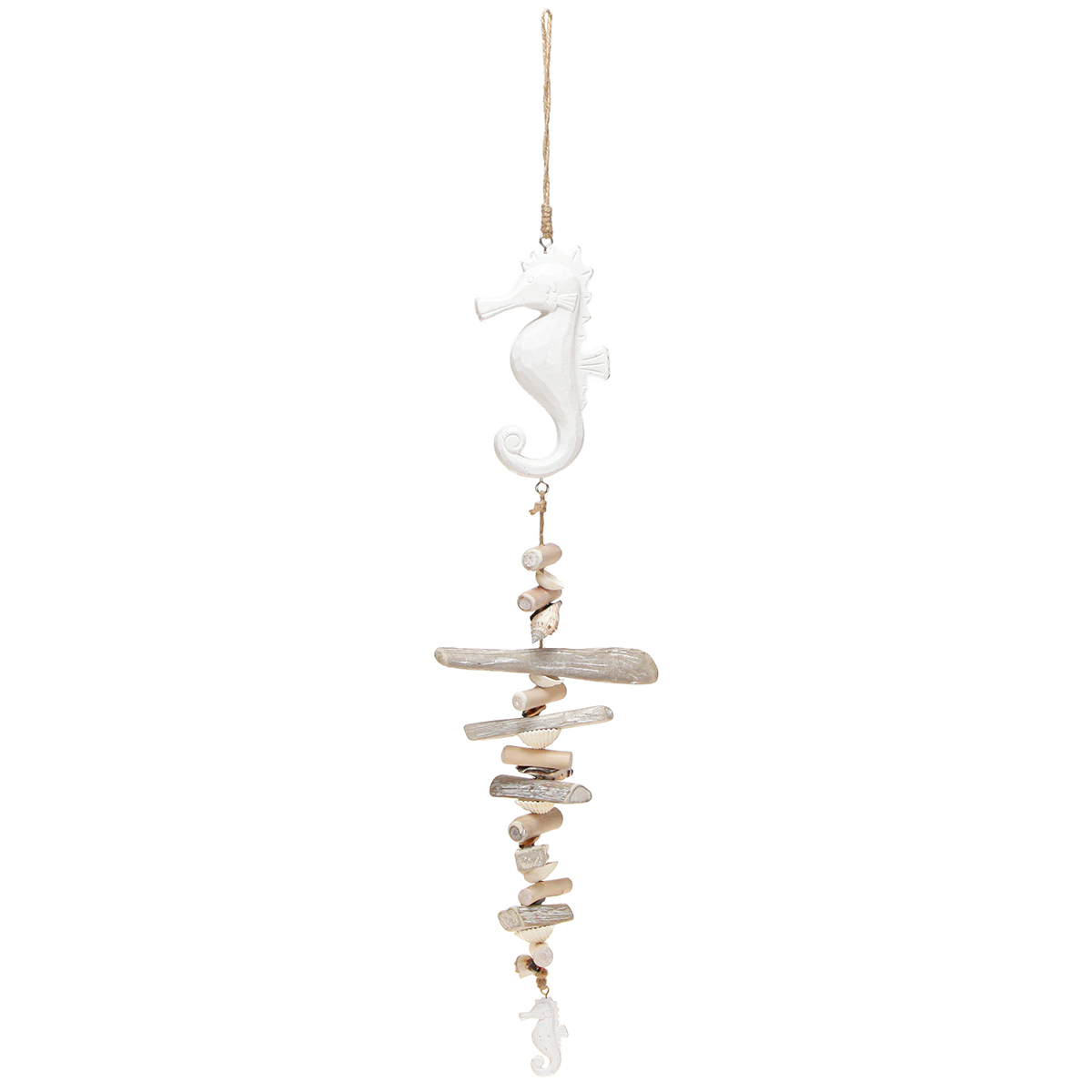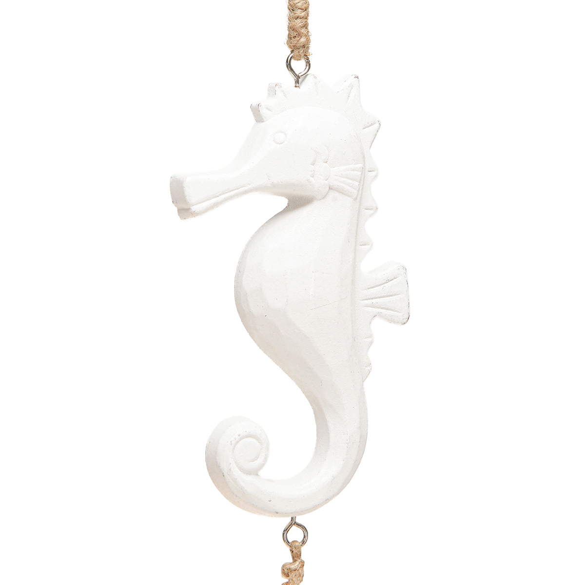 Guirlanda de Decoração Marítima Conchas de Madeira de Deriva Cavalo Marinho Branco 55cm