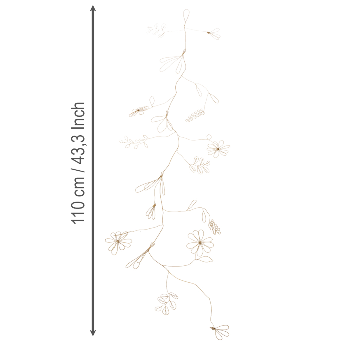 Guirlanda de flores de metal, arame para coroa de flores, decoração de verão, decoração de parede, dourada, 110 cm