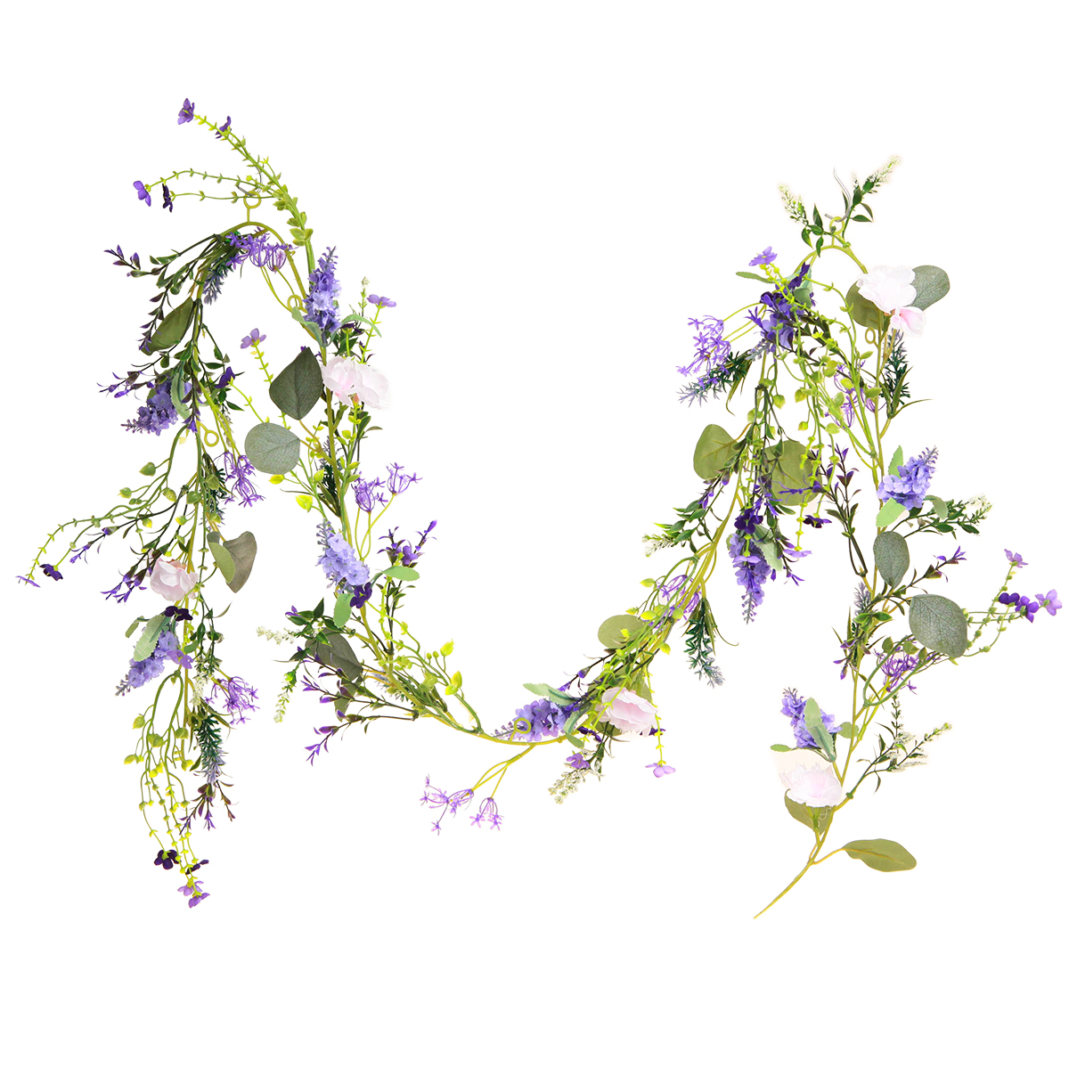 A guirlanda de lavanda tem comprimento total de aproximadamente 194 centímetros. Você receberá 2 guirlandas de cores diferentes.