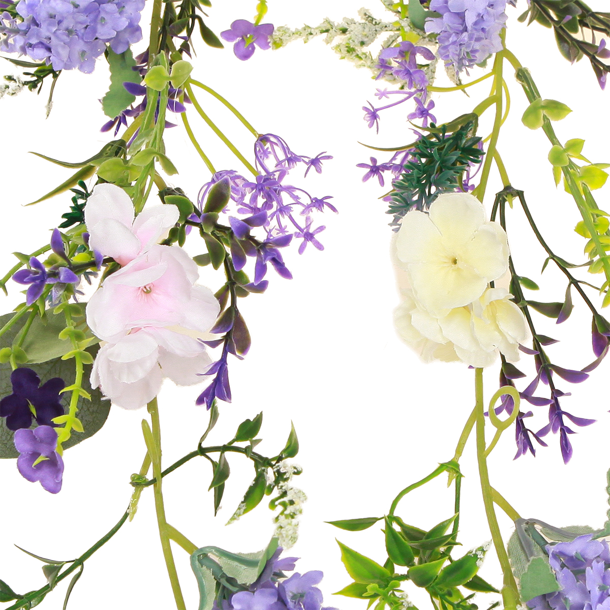 Guirlanda de flores romântica em roxo rosa branco L194cm 2 unidades