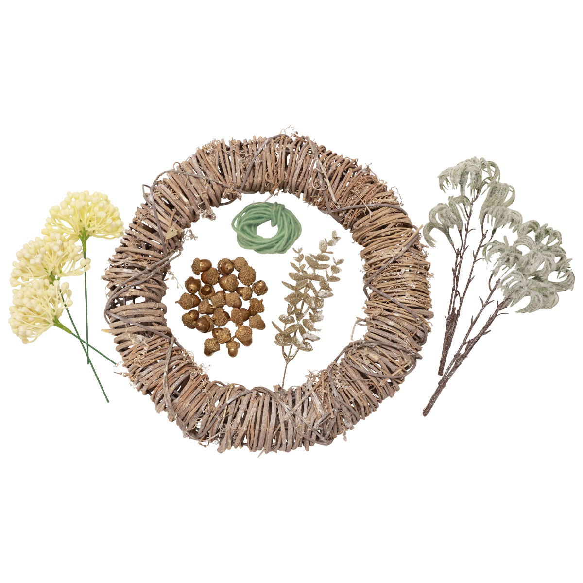Tudo em uma caixa DIY: Faça uma guirlanda de porta moderna para o Advento com flores artificiais selecionadas e decorações naturais. A guirlanda de Natal também é um ótimo conjunto completo para iniciantes!Essa ideia DIY é gelada e estilosa: o eucalipto, que agora é parte integrante de uma guirlanda de Natal moderna. As hortênsias com suas lindas umbelas parecem verdadeiras flores artificiais. Há também clematis artificiais e bolotas reais na guirlanda da porta. A guirlanda da porta do Advento em si é uma guirlanda de videira com 38 centímetros de diâmetro.