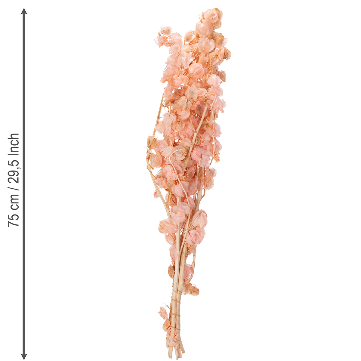 Graças à sua impressionante altura de 75 cm e à combinação fresca de tons rosa e naturais, a flor seca em haste não só se destaca em qualquer buquê de flores secas, como também se destaca como uma peça versátil por si só. Sua aparência delicada confere um toque charmoso e romântico a qualquer ambiente. Além disso, é incrivelmente prática – não precisa de água, não murcha e combina perfeitamente com outras flores secas ou elementos decorativos como vasos, castiçais ou luzes de fada.