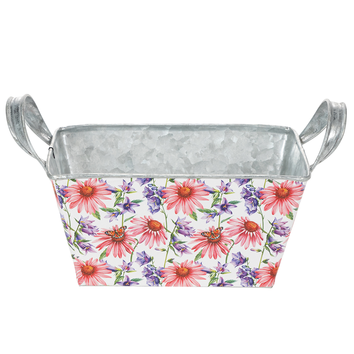 Não perca os vasos de flores no design desta jardineira de metal e arrume as flores da primavera nos expressivos vasos com um motivo de echinacea.