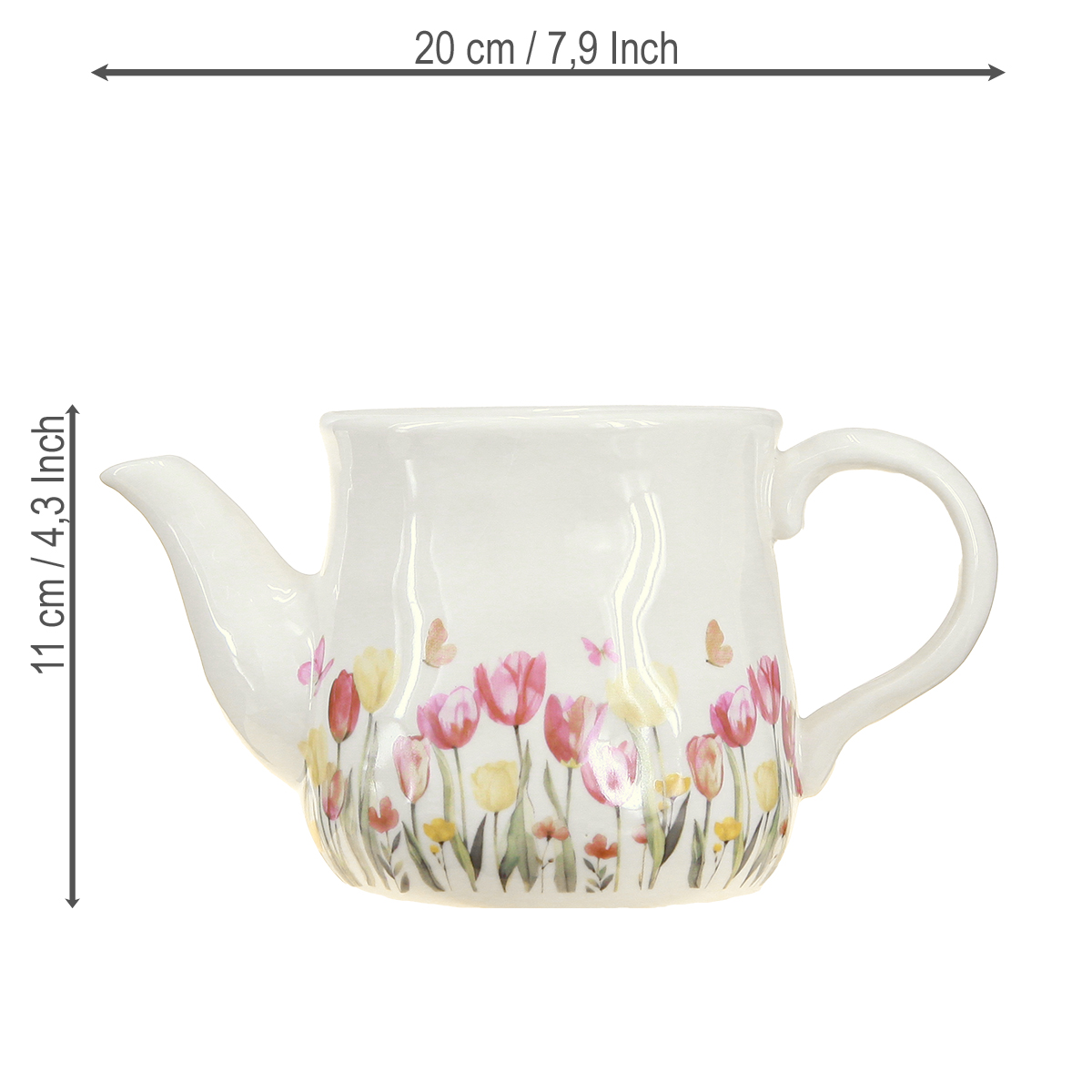 Já reparou como um pequeno objeto decorativo pode transformar completamente o ambiente de uma divisão? O nosso jarro de cerâmica com motivo floral é exatamente isso! Este charmoso jarro traz um toque de frescura primaveril à sua casa à primeira vista. Com 11 cm de altura e 20 cm de comprimento, adapta-se perfeitamente à mesa de jantar, a uma prateleira ou ao parapeito da janela. O motivo floral, cuidadosamente desenhado em cores suaves e vibrantes sobre um fundo de cerâmica branca, exala leveza. A combinação de estética e funcionalidade torna-o num verdadeiro coringa.