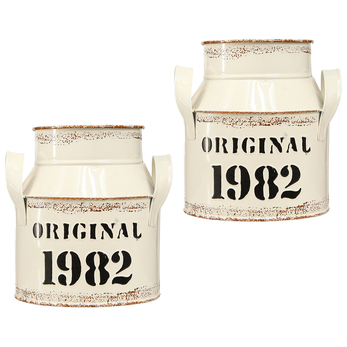 Jarro Decoração Metal "Original 1982" Creme Ferrugem H16cm 2pçs