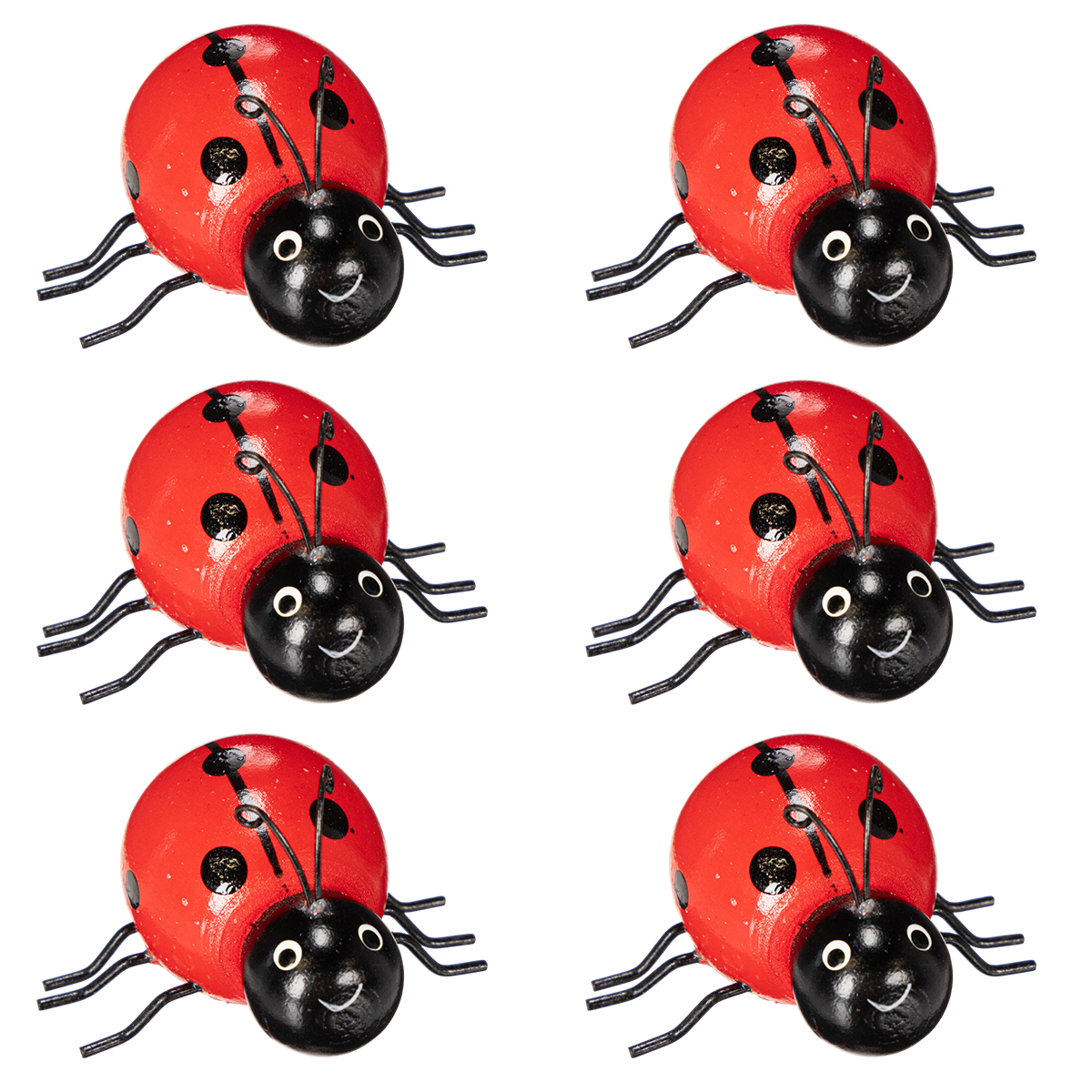Joaninhas de madeira/bichos da sorte, lindas decorações para casa, 5 cm, 6 peças