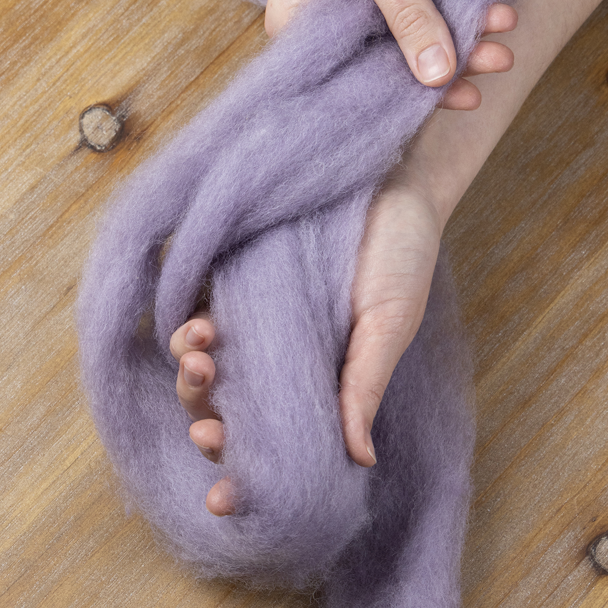 Lã decorativa, lilás claro, cordão de lã de 2m, lã feltrada para artesanato e floricultura.