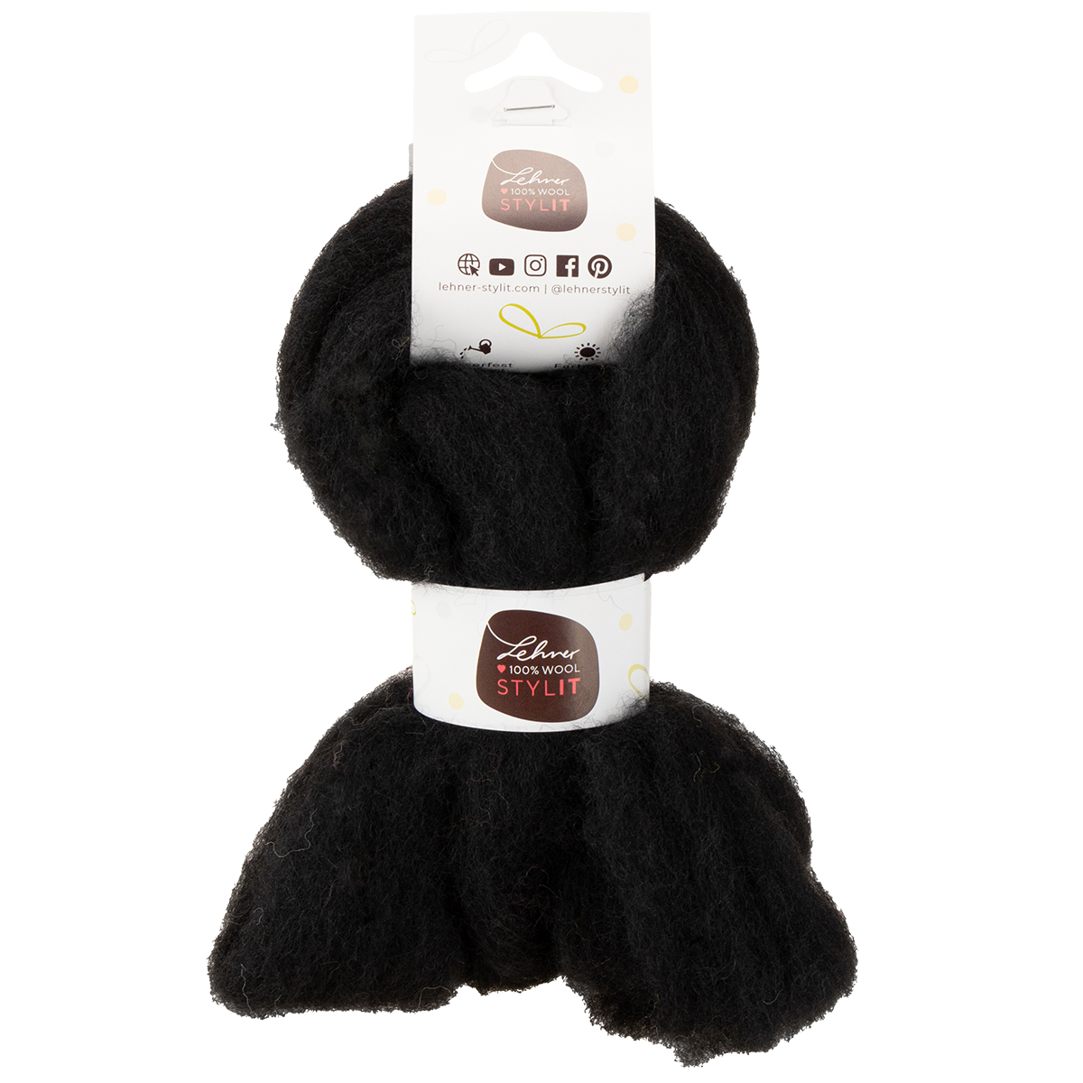 Lã decorativa para feltragem, ideal para artesanato criativo e projetos florais. 2m, preta.