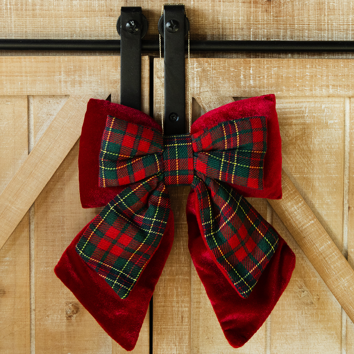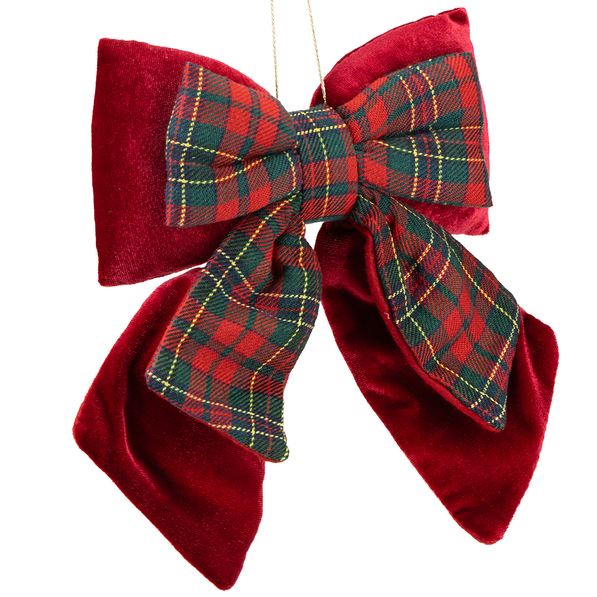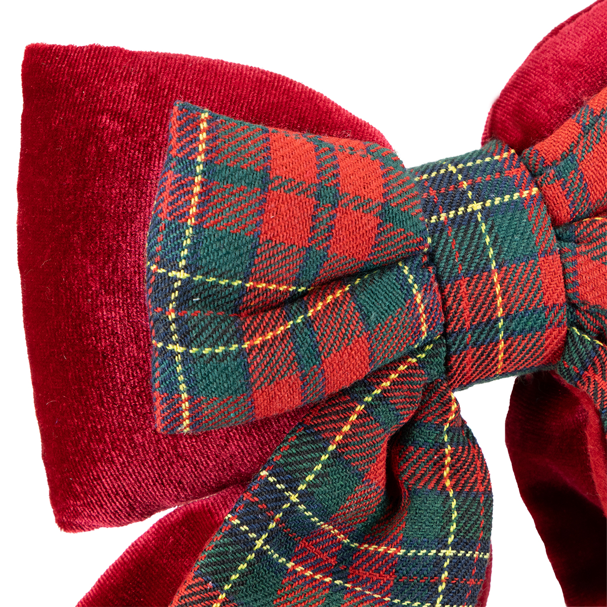 Laço de veludo xadrez escocês vermelho para ambientes internos 21×23cm