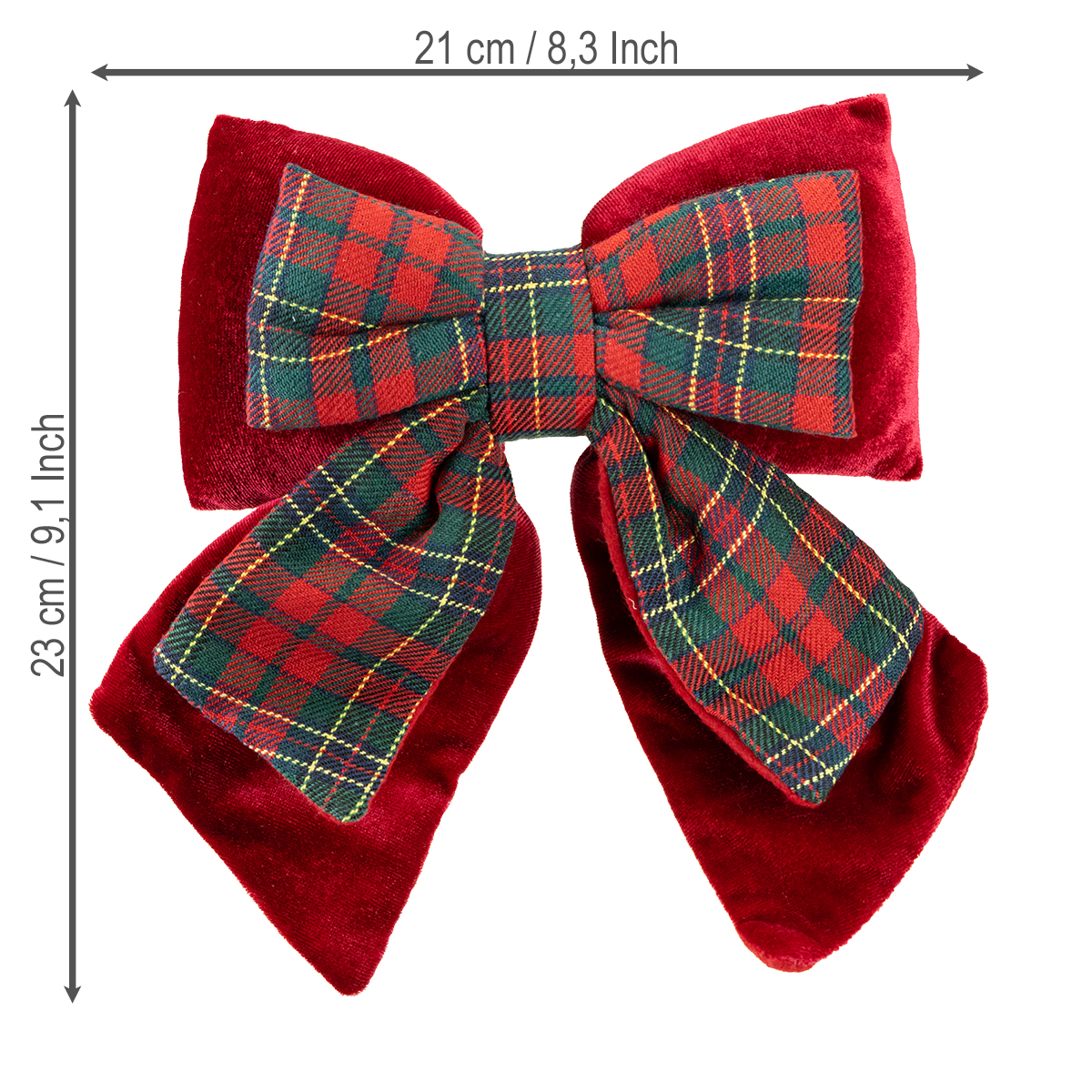 O Natal está chegando – se você ainda está procurando uma decoração especial, nosso laço vermelho com estampa xadrez escocesa oferece elegância e estilo. Este grande laço de veludo traz um toque natalino e um toque country chique para sua casa. A textura aveludada combinada com o clássico xadrez vermelho e verde o torna um verdadeiro chamariz – seja na porta, em um arranjo festivo ou em um presente suntuoso.