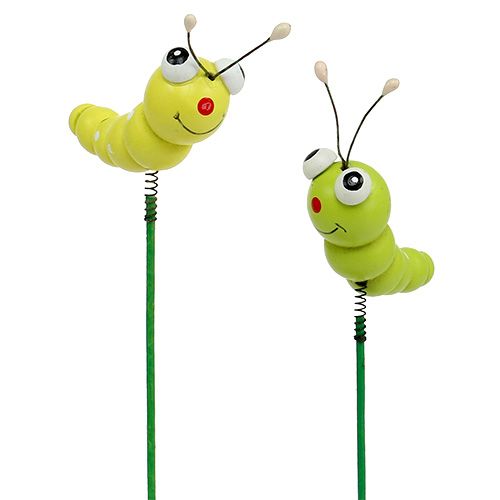 Lagarta de madeira em bastão verde, amarelo 8 cm 24 unidades