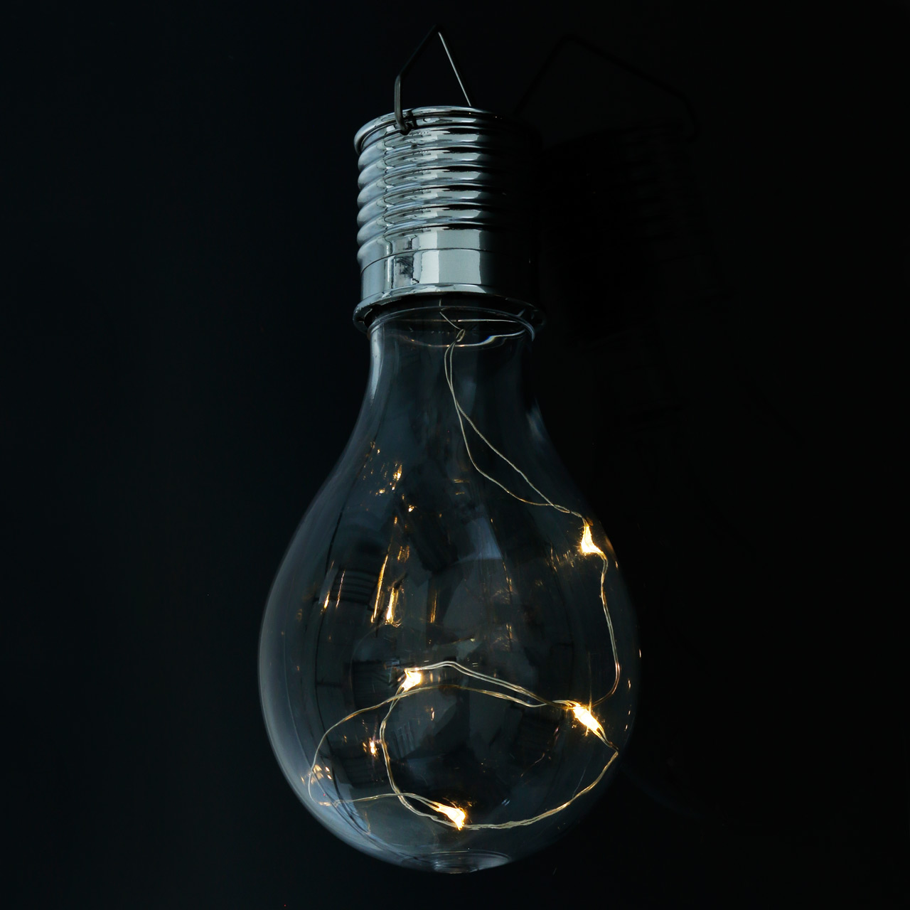 Instruções de utilização: A cápsula de plástico pode ser facilmente desenroscada. Agora coloque a chave interna na posição ON. Você também pode aproveitar esta oportunidade para dobrar o "fio incandescente", ou seja, o mini cordão de luzes, ao seu gosto. Aparafuse novamente a cápsula protetora e deixe a luz solar pendurada ou exposta ao sol com o painel voltado para o céu por pelo menos 6 horas. No escuro, a lâmpada acende automaticamente e acende por pelo menos 6 horas!
