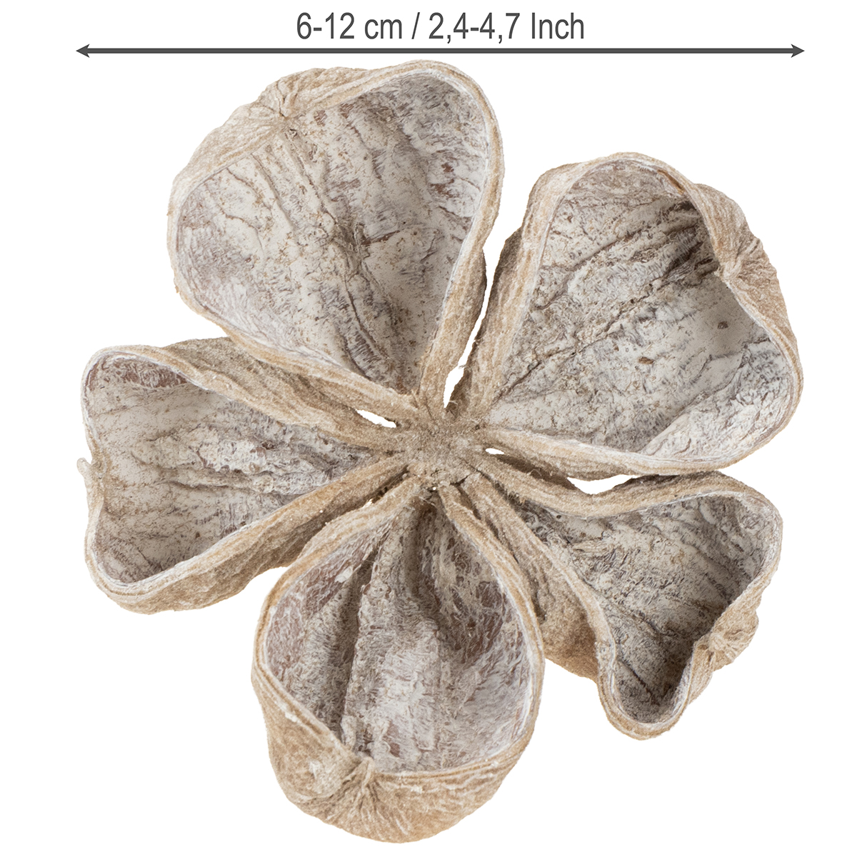 O lótus terrestre, que é lavado de branco, está em uma bolsa com um total de 50 peças. Cada cabeça de flor é um produto natural, o que pode levar a flutuações naturais na textura. As flores secas individuais têm cerca de 6 a 12 centímetros de tamanho.