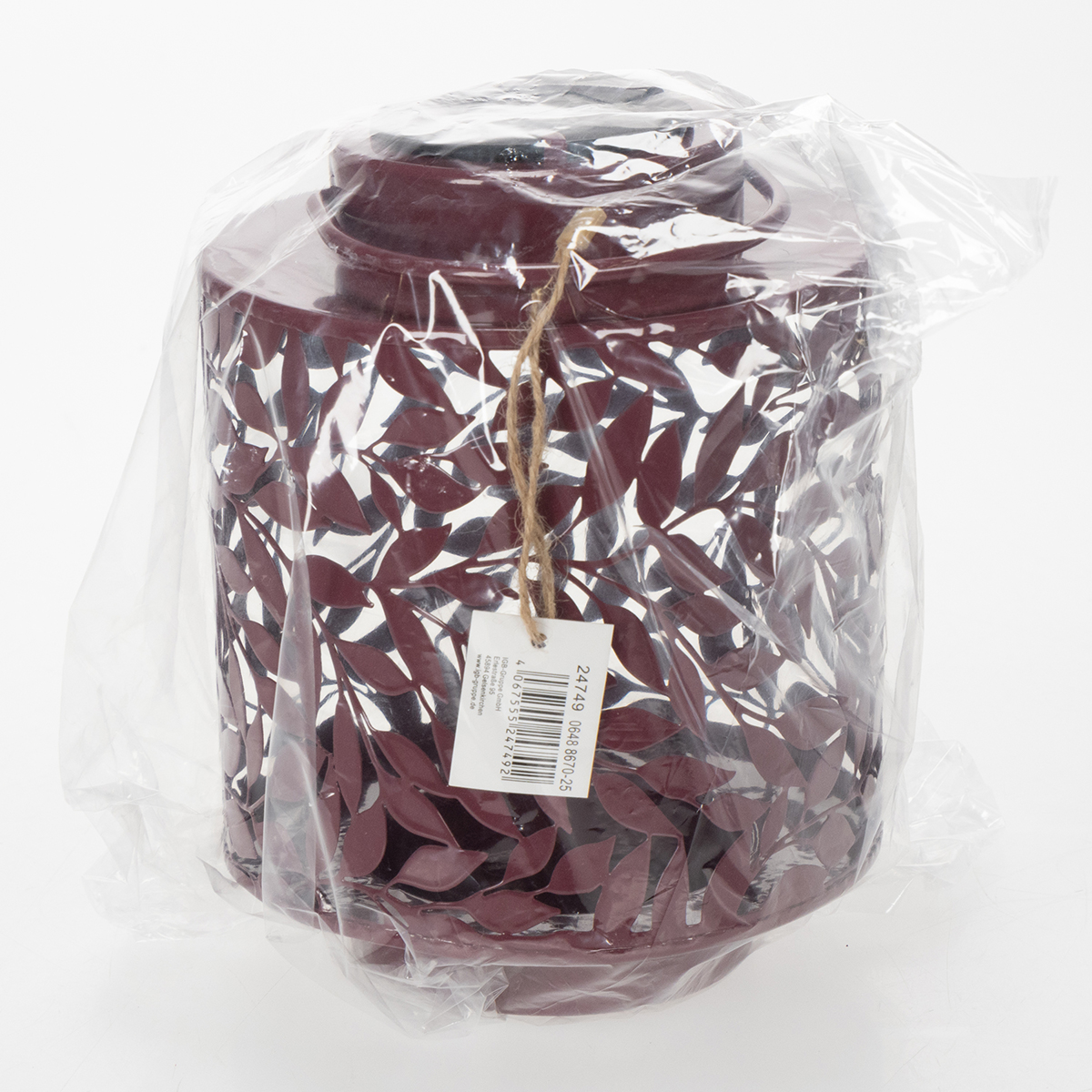 A estrutura metálica robusta com seu delicado padrão de folhas é resistente às intempéries e à ferrugem, tornando-a uma companheira confiável mesmo em dias chuvosos. A cor vermelha quente adiciona um toque de elegância, enquanto o design de folhas traz uma sensação natural. Essa combinação se encaixa perfeitamente em jardins de estilo mediterrâneo ou harmoniza com móveis naturais, como madeira ou rattan. Além disso, é prática – sua alça resistente permite movê-la com facilidade.