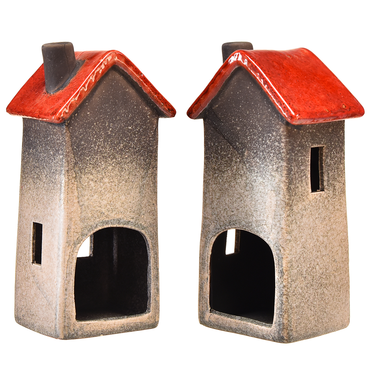 Lanterna de cerâmica para casa com telhado vermelho e janela em forma de coração - 17,5 cm 2 unidades