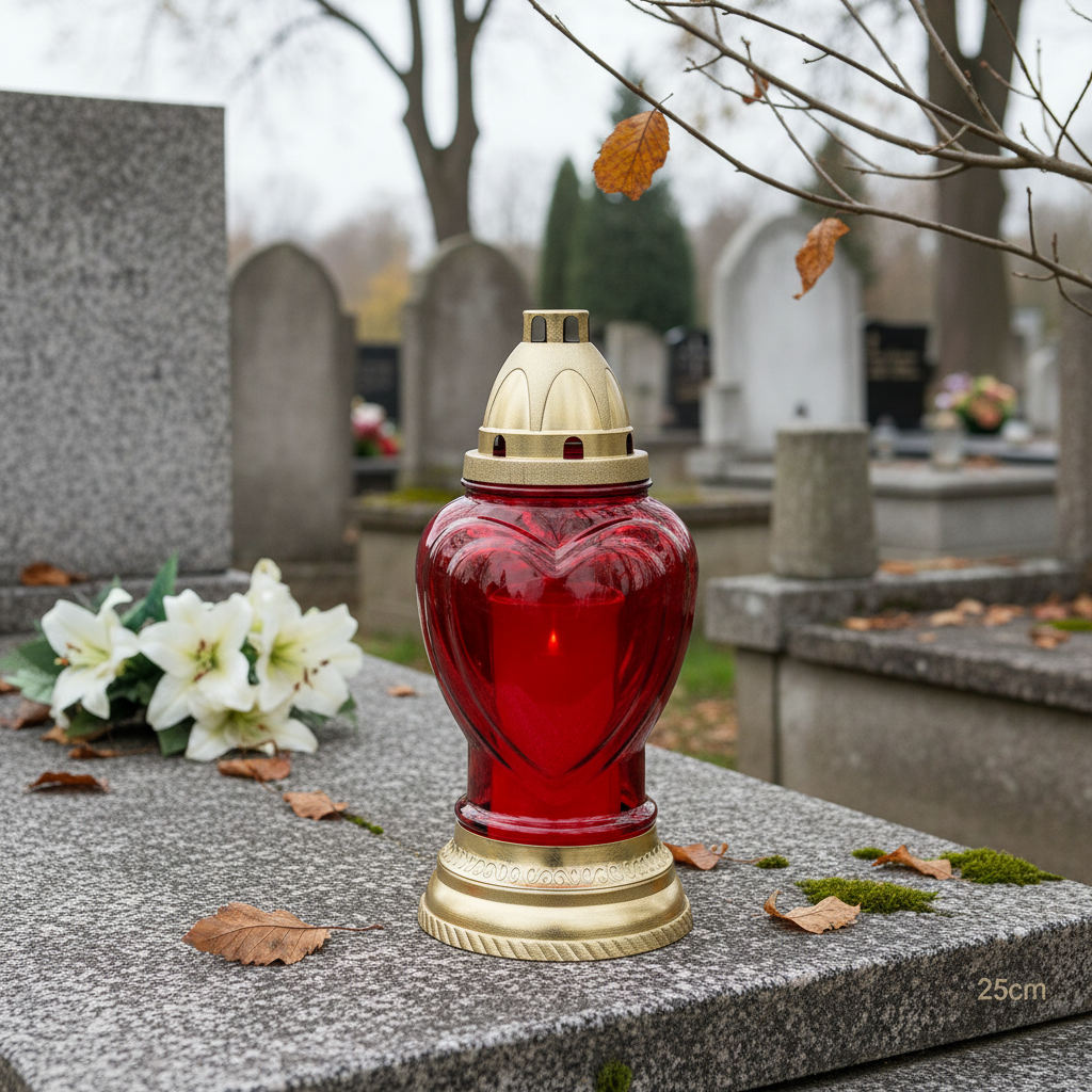A lanterna funerária é decorada com um relevo atemporal em forma de coração em ambos os lados, conferindo às luzes funerárias um visual elegante. A tampa e a base são feitas de plástico e têm um formato elegante.